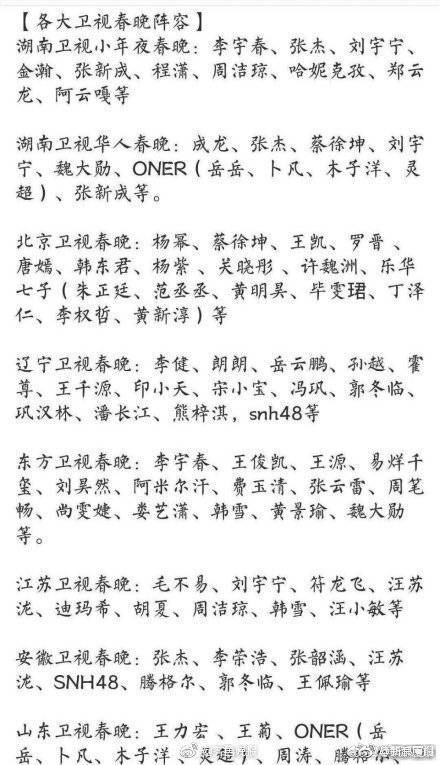 各大卫视春晚加盟明星纷纷出炉,这几个卫视可谓走心,大牌明星云集,王俊凯成了粉丝最期待的人,你们期待谁呢?春节你们会看哪个卫视的节目呢?