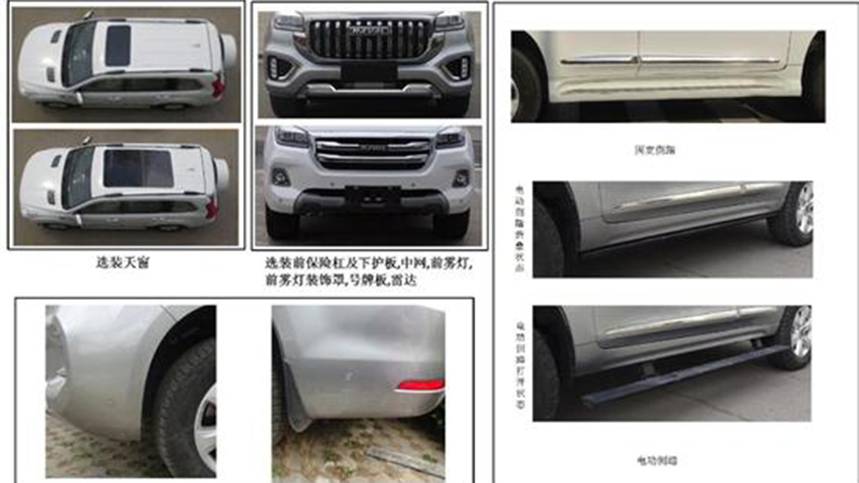 【换了新前脸/尺寸加长,新款哈弗H9变了啥?】最近关于新款哈弗H9又有了新消息,它的申报图被曝光,相比现款车有不小变化。先来看前脸,除了大灯组,其它造型都采用新设计,用上全新中网造型、竖状雾灯、全新前保险杠。车身侧面和车尾变动不大,采用侧开尾门设计。尺寸比现款更长了,车身长度提升到5077mm,轴距没变还是2800mm。它还是提供5座/7座椅布局,搭载224马力2.0T发动机。(图片来源网络)