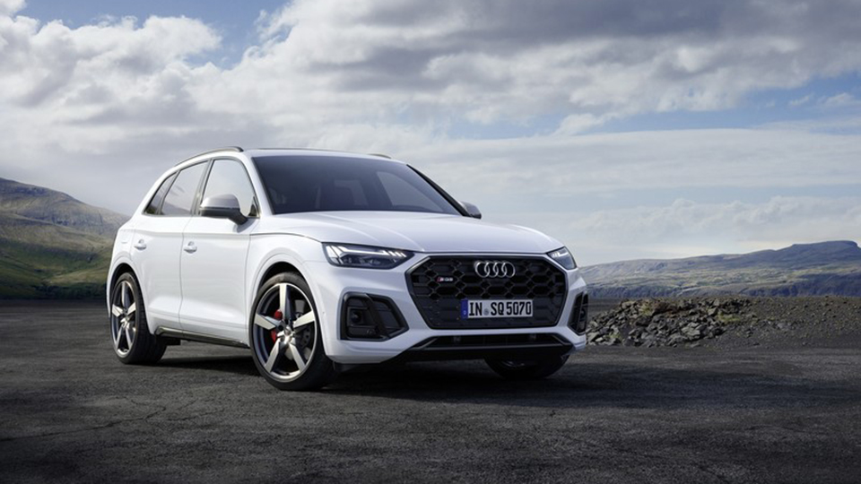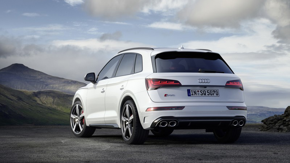 【预售63万、3.0T V6发动机?新款奥迪SQ5国内谍照】之前,奥迪官方曾说新款奥迪SQ5将在6月12日发布。最近,它的谍照在国内曝光,预售价或为63万元左右。外观采用了奥迪最新家族设计,细节上进行黑化,包括中网、雾灯、侧裙处等。尾灯采用熏黑设计,配备奥迪新研发的OLED数字照明技术。动力预计搭载3.0升涡轮增压V6发动机,最大功率354马力,匹配8速手自一体变速箱和quattro四驱系统。(图片来源网络)