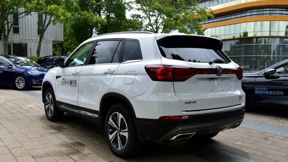 【长安CS75 FCV亮相:最大续航约600km/和燃油版长得一样】6月8日,长安CS75 FCV燃料电池车亮相,它目前属于测试阶段,还不是最终量产版本。燃料电池车和燃油版长得很像,不看标识几乎看不出有啥不同。它的长宽高分别是4650/1850/1705mm,轴距2700mm,除了高度比燃油版略低外,其它都一样。主动安全和驾驶辅助功能也比较丰富,动力由储氢系统和燃料电池系统构成,NEDC续航600公里。(图片来源网络)