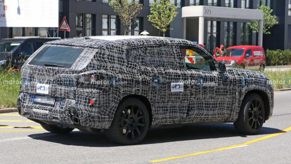 【纵置布局排气、750马力?宝马全新旗舰SUV曝光】最近,关于宝马全新旗舰SUV宝马X8 M谍照曝光,它将在今年年底发布。整个造型伪装的比较厚,可以发现它采用了比较独特的纵置布局排气,还有巨型双肾格栅、溜背车顶、分体式灯组等。宝马X8系列由宝马M部门打造,只提供M Power版。动力将搭载4.0L双涡轮增压V8发动机+电机,综合最大输出功率或750马力。(图片来源网络)