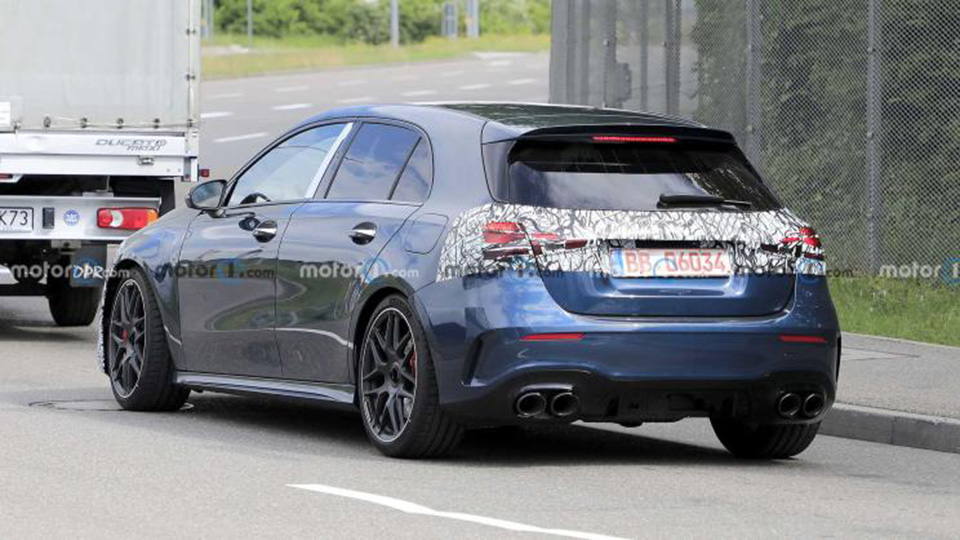 【新款AMG A 45曝光,还是2.0T发动机/功率微调】近日,有外媒曝光新款梅赛德斯-AMG A 45的谍照,它可能在今年年底亮相。设计层面,它主要变化集中在头灯、尾灯上面,可能会采用贯穿式尾灯,前脸也进行调整,设计更夸张。内饰、动力还没啥消息,可能继续搭载2.0T四缸发动机,不过功率可能调整,现款A 45最大功率387马力。(图片来源于网络)