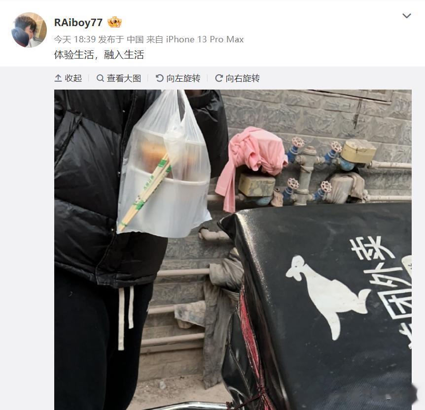 iboy真去送外卖了?晒出送外卖照片! 最近iboy在微博上晒出了自己送外卖的照片,并且表示:体验生活,融入生活。 之前iboy在转会期没有找到工作,于是自己自嘲:去送外卖了。 现在真的晒出了这种照片,一时间很多人难以相信。 虽然iboy现在没找到工作,但是他打了这么多年的职业,收入应该还是很高的,估计是真的体验一下生活吧,或者是在整活?当然也有人祝福他:下岗再就业,生活态度不错。