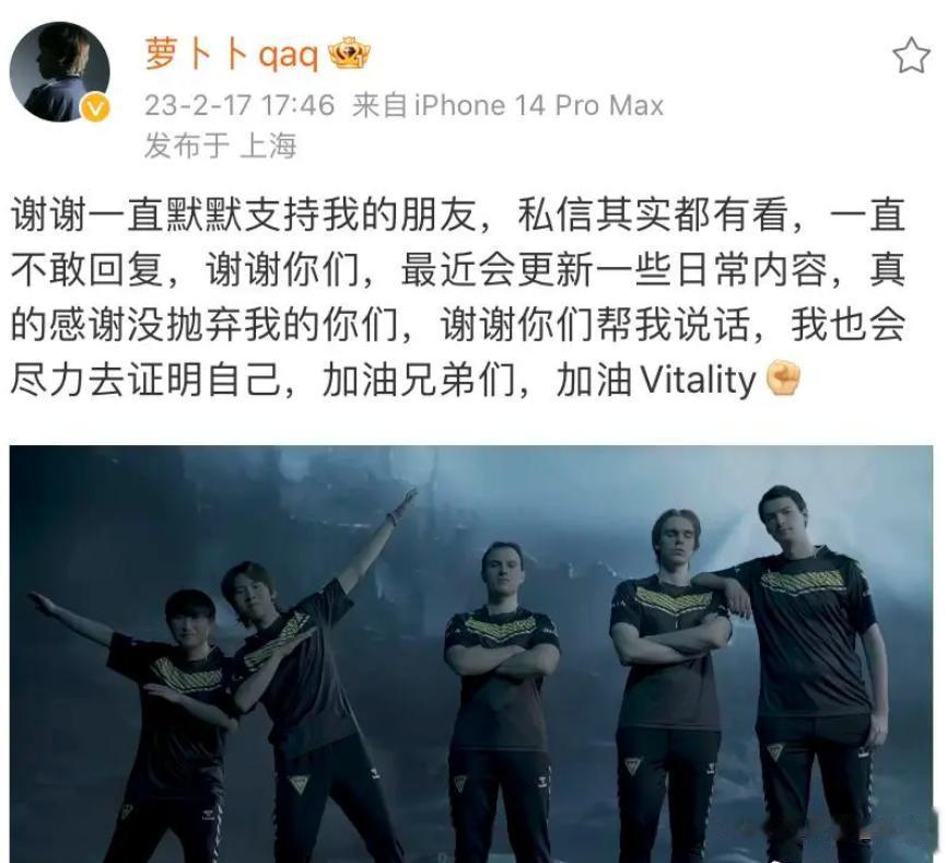 Bo更新微博感谢粉丝:谢谢你们帮我说话,我也会尽力去证明自己! 今年开始在LEC赛区VIT战队打比赛的bo,也时隔许久终于更新了自己的微博,感谢粉丝们帮自己说话,表示会努力证明自己,也透露以后会在微博上更新一些日常。 而对于Bo的态度一直都是非常有争议的,有人认为打过假赛就该永远消失在赛场上,Bo打出什么样的成绩,自己都不会支持;也有人表示Bo当初主动承认错误,也是被迫参与假赛,现在远走海外,现在继续打比赛可以理解。