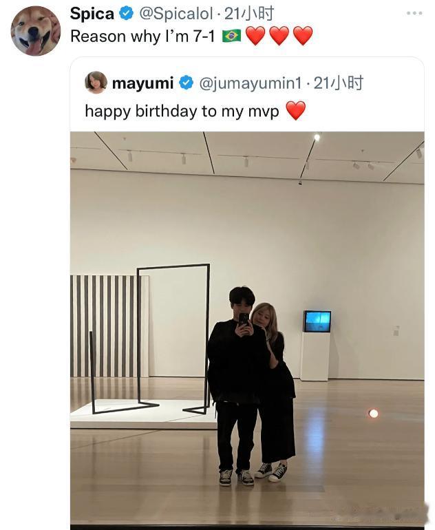 Mayumi和FLY战队中国打野Spica在一起了! 最近Mayumi官宣了自己的恋情,交往对象是FLY打野Spica,值得一提的是Spica是中国选手,此前最让大家印象深刻的应该是在S10世界赛上,他的TSM莉莉娅打出名场面,1睡9,解说都看傻了。 希望两人可以幸福吧!