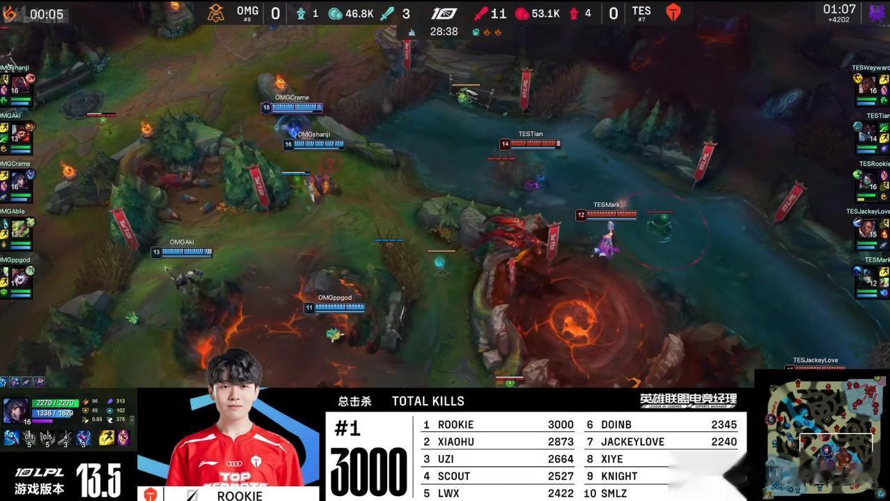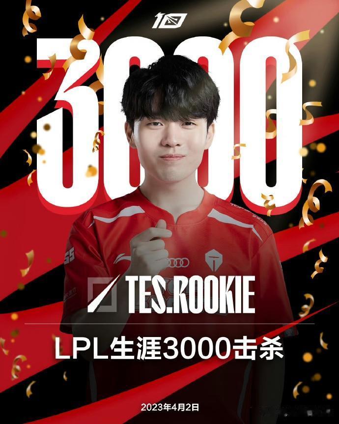 Rookie成为全球首位单联赛3000杀的选手! 在TES和OMG季后赛中,Rookie阿卡丽拿到了8-1的战绩,达成了全球首位单联赛3000杀选手的荣誉。 在LPL中第二名是xiaohu,目前是2873杀,恭喜Rookie!