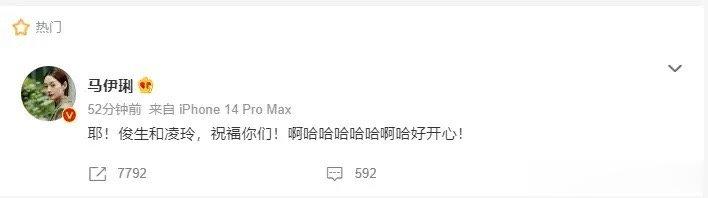 #雷佳音 白玉兰视帝#雷佳音和吴越分别摘得白玉兰奖视帝视后荣誉,可把马伊琍高兴坏了,连忙发文祝贺:“耶!俊生和凌玲,祝福你们!啊哈哈哈哈哈啊哈好开心! ”