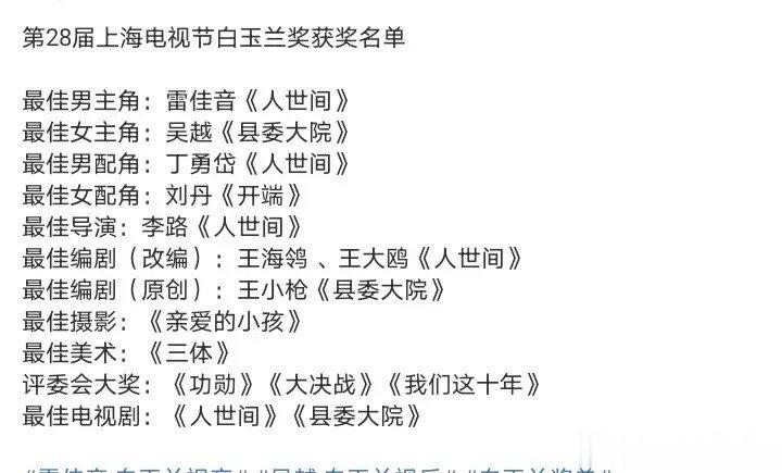 #狂飙没拿奖##白玉兰最佳电视剧双黄蛋# 本届白玉兰奖,5个令人意外的地方!