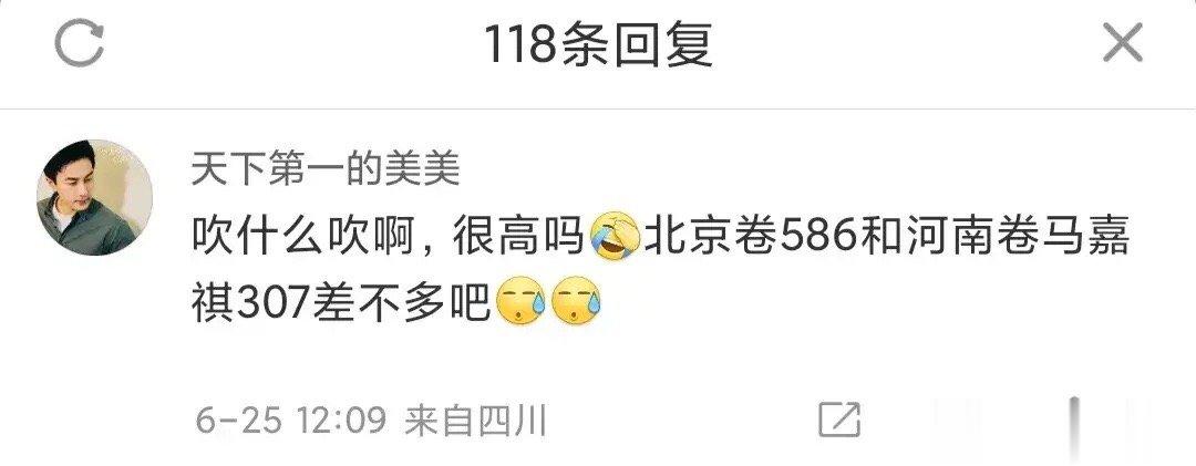 #李天泽高考成绩586#时代俊峰艺人李天泽高考取得586分的好成绩,有网友却表示,北京卷的586也就和河南卷马嘉祺的307差不多吧。对此,你怎么看?