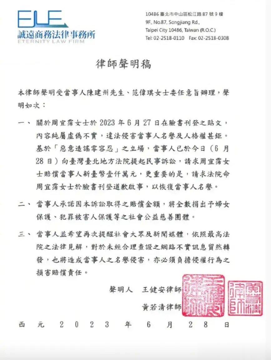 #陈建州起诉大牙#最近的瓜真多,黑人陈建州被指性骚扰,这就发律师函要起诉大牙造谣他,要求赔偿一千万台币,折合人民币二百多万,事已过了12年,不知大牙有没有保留当初的证据,黑人估计就是拿捏她手上没证据才敢这么做,果然只要跟曲线一起的都一个德行,道不同不相为谋,湾湾那边果然玩得花。