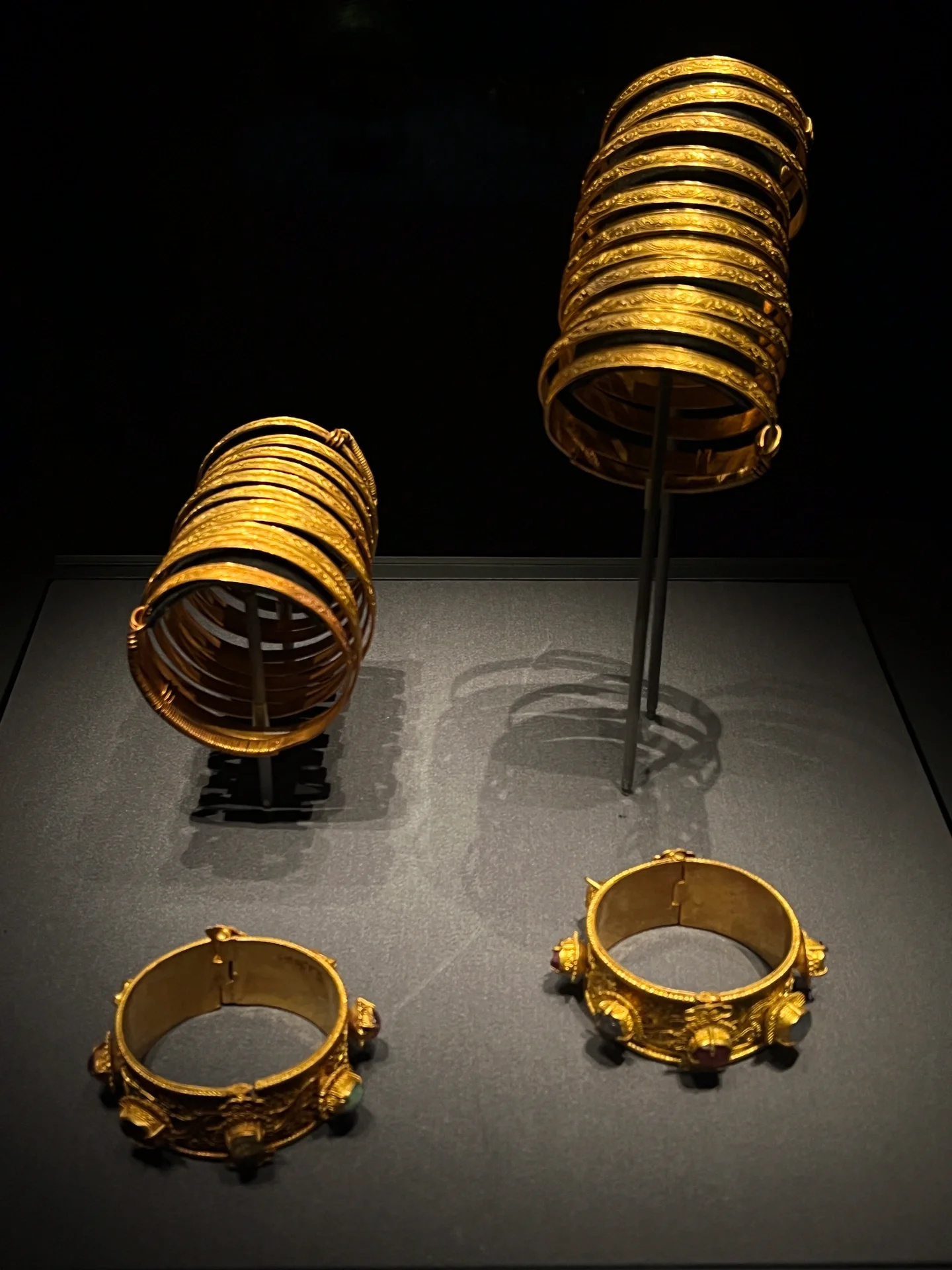 才知道省博新馆今年开放了 跟旧馆相比,新馆的建筑外观 一方面保留了古代建筑造型风格 同时又新增了现代化玻璃立面的设计,还挺气派 但同行的朋友好像还是更偏爱旧馆的古朴厚重 - 🏛场馆分布: 新馆就是南馆,现在好像都统一从新馆进,旧馆出了 南馆一共有地下一层及地上四层 负一楼是编钟演奏厅 曾侯乙展厅在地上1-2层 二楼还有越王勾践剑展厅和曾世家展厅 三楼是楚国八百年展厅和梁庄王展厅,以及文创用品盖章处 四楼是书画展厅,还有有咖啡厅和休息区,网红甜品越王勾践剑、曾侯乙编钟也都在这里 - 🗿游玩路线推荐: ▶️ 从地下一层的编钟演奏厅开始逛 编钟表演参观需要买票,🔍湖北省博编钟演奏票务,自行选座 演出时间是11:00/14:00/15:00(三场) ▶️ 然后直接上楼通往一层曾侯乙展厅 逛完继续上楼还能逛二楼的厅 ▶️ 逛完曾侯乙展厅之后就可以去隔壁排队逛越王勾践剑展厅了 这个厅超级火爆❤️‍🔥 可能是因为这个展厅本来就不大,能容纳的人数有限 但是这个厅个人建议一定要逛 我挤到人群里面拍照时 这柄剑静静躺在玻璃展柜里 身上仍然保留着当年的冷锋与光芒 它穿越两千五百年的时光呈现在我们的面前 瞬间,“历史”这个词就变得具象起来 ▶️ 接着就可以再去隔壁逛逛曾世家展厅 但是相较之下,我还是更喜欢三楼的楚国八百年展厅和梁庄王展厅 特别是梁庄王展厅,一整个珠光宝气 金锭、金碗、金手镯、金腰带、金盆盆 简直看的眼花缭乱 如果你想要找人讲解,可以找志愿者或者自行购买语音导览机,20💰/3h,40💰/一天,押金200 ▶️ 最后就可以去四楼打卡超级出片的旋转楼梯 真的怎么拍都好看 - 🎫门票预约:免门票,xcx预约 ⌚️展馆开放时间:周二至周天,早9-晚17点(每周一闭馆,下午4点后停止入馆) ‼️‼️‼️重要提示:一定记得携带身份证入馆! 🚘交通路线:🚇地铁8号线省博湖北日报A出口/🚌402公交东湖路湖北省博物馆下 🚗湖北省博有停车场,3💰/h,但周末容易堵车,不建议开车