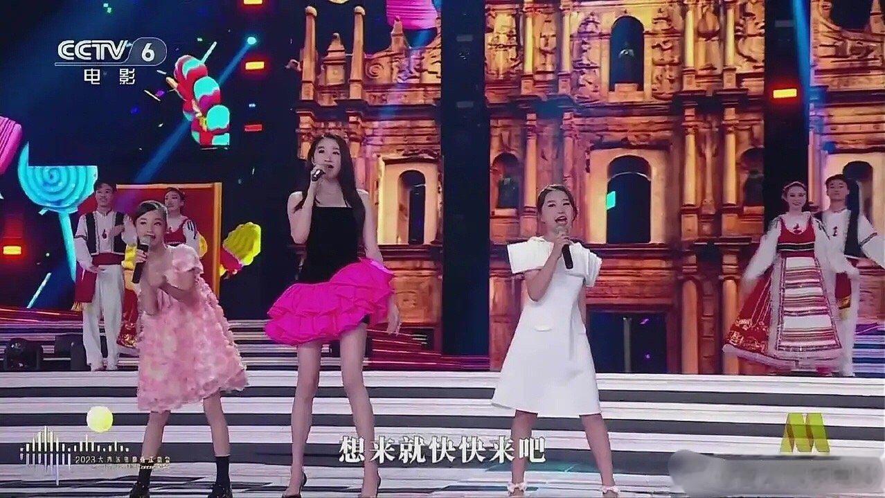 镜头里晓彤很好看啊,和两个小女孩一起唱歌好可爱!甜美可人,满屏的大长腿!