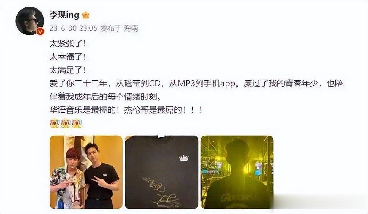 但让李现最激动的,还是在6月30,李现晒出和周杰伦的合照,表示自己追了22年周杰伦的歌,从少年到成年后,周杰伦在他心中都是最棒的!