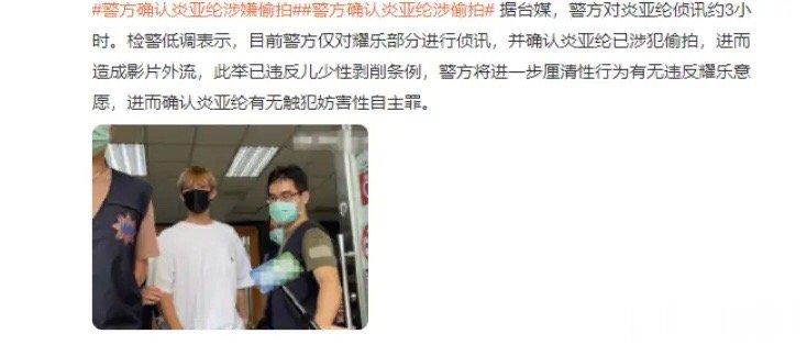#曝炎亚纶涉儿少性剥削#当地警方确认炎亚纶涉嫌偷拍私密视频,已被限制出境出海,谕