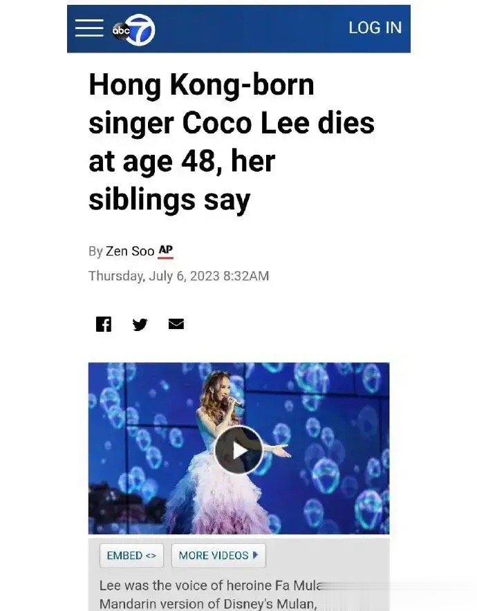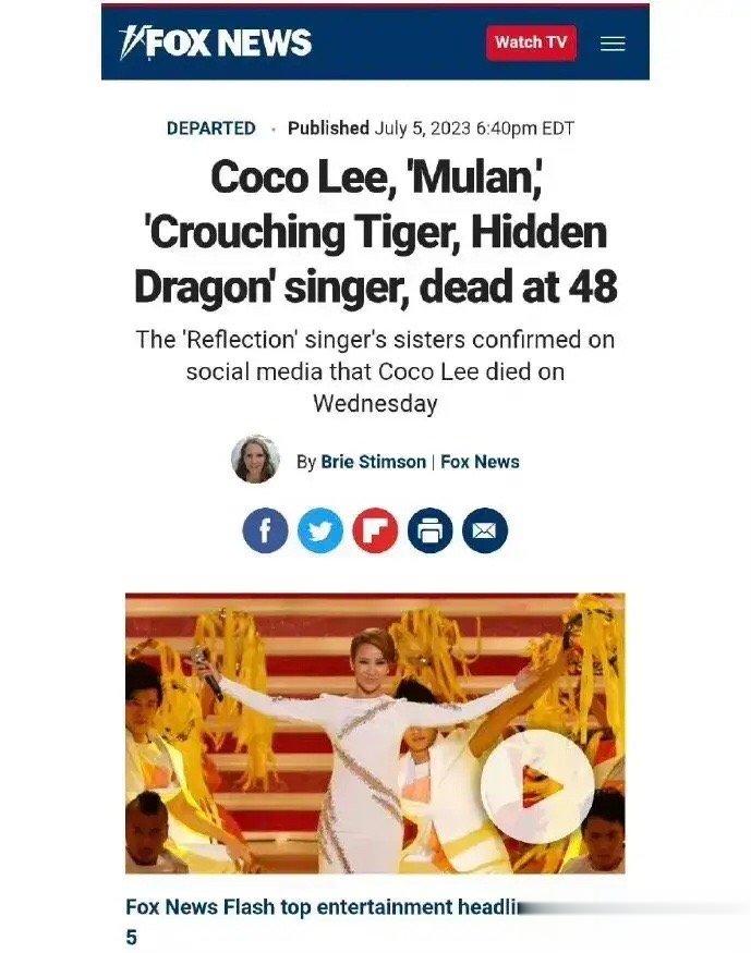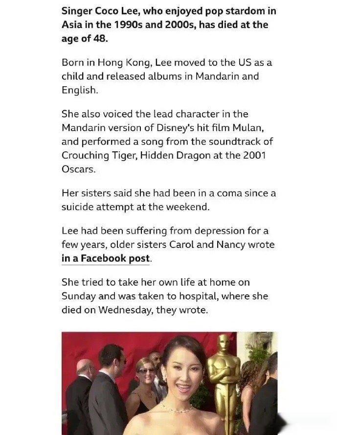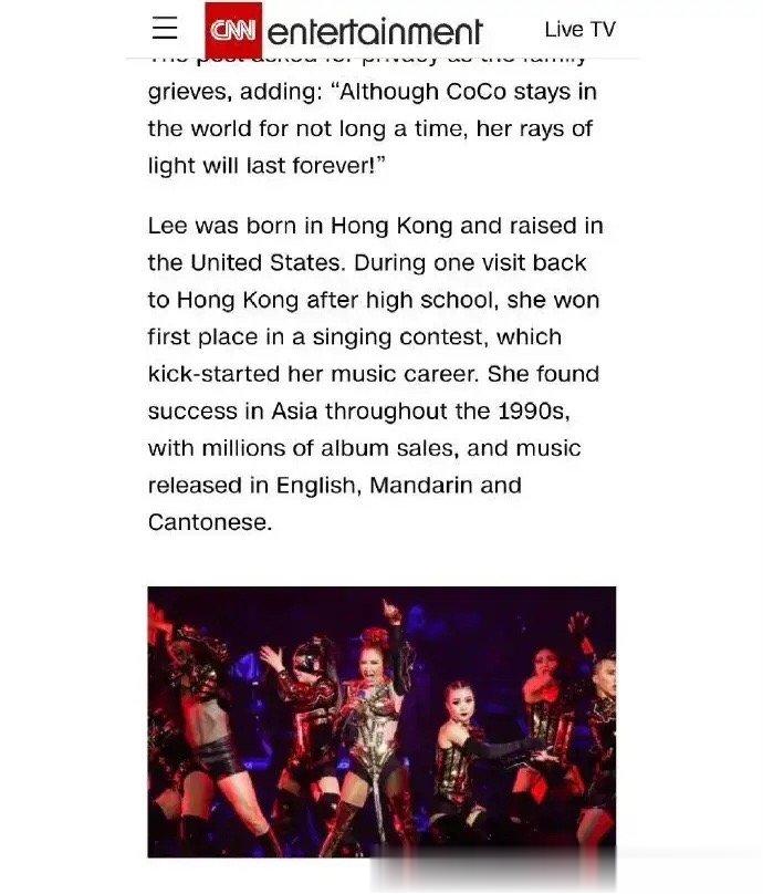 CoCo李玟的影响力!李玟去世,多家外媒报道,形容巨星陨落。美联、路透、CNN、法新、BBC、ABC等......