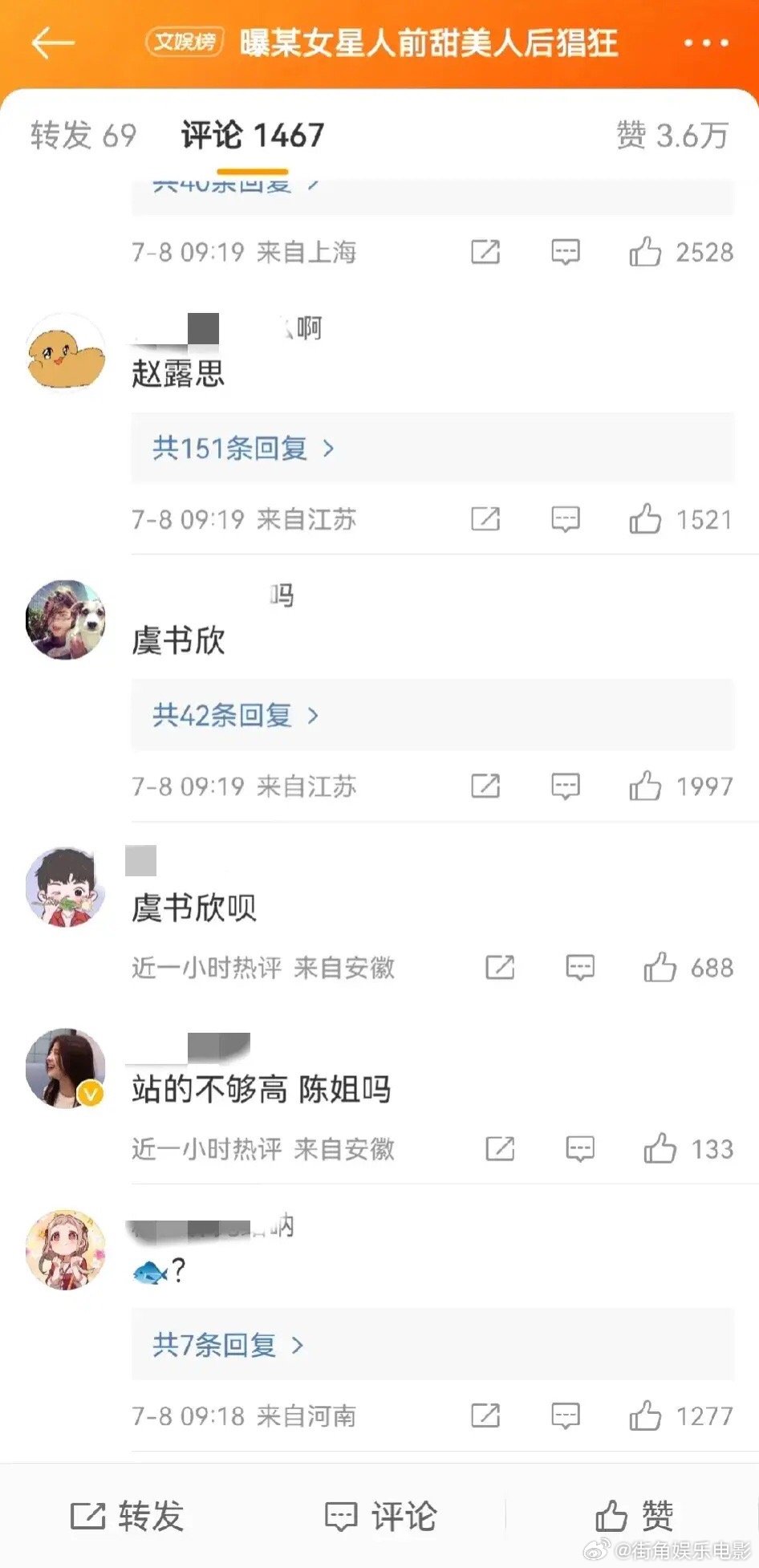#曝某女星人前甜美人后猖狂#业内爆料女明星人前甜美,人后猖狂,亲自下场撕番位,嫌弃男明星丑,评论区点名赵露思和虞书欣,你们觉得是谁?[吃瓜][吃瓜]