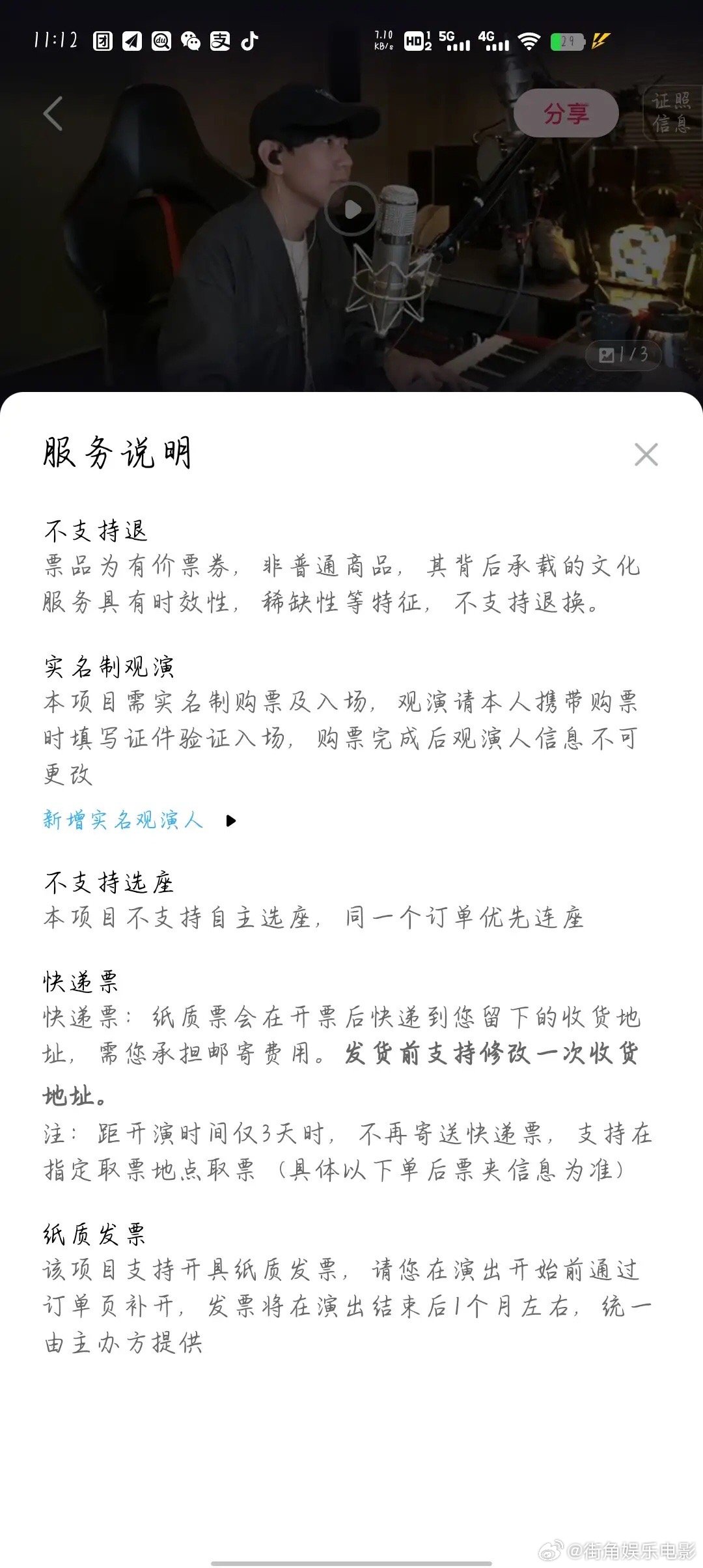 散票黄牛别冲动啊,这次JJ广州站巡演是实名制,一票一证绑定好的,想买黄牛票的也注意了,不然高价买的黄牛票到时候跟许巍演唱会一样拿着票在门口进不去