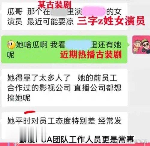 #曝Z姓女演员霸凌员工#曝某Z姓女演员当小三?