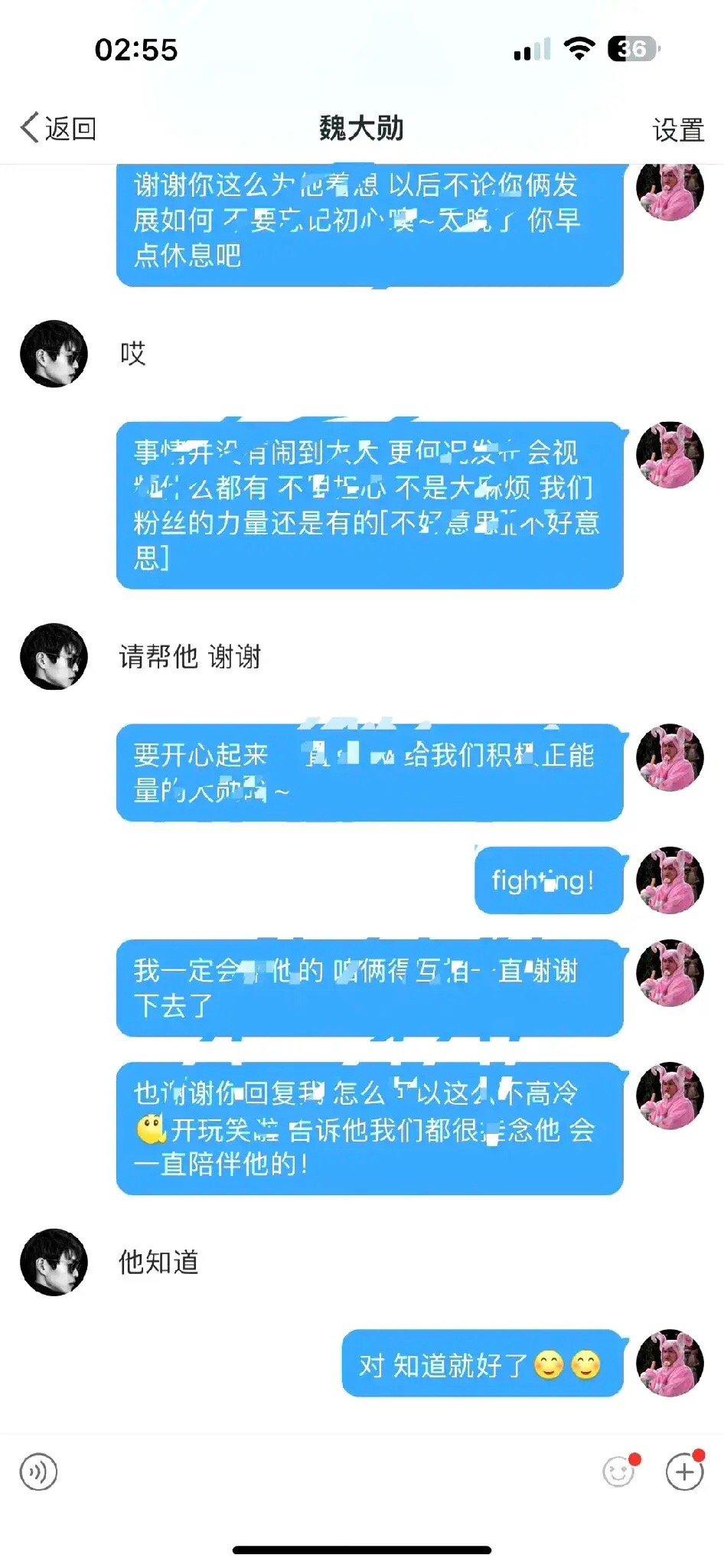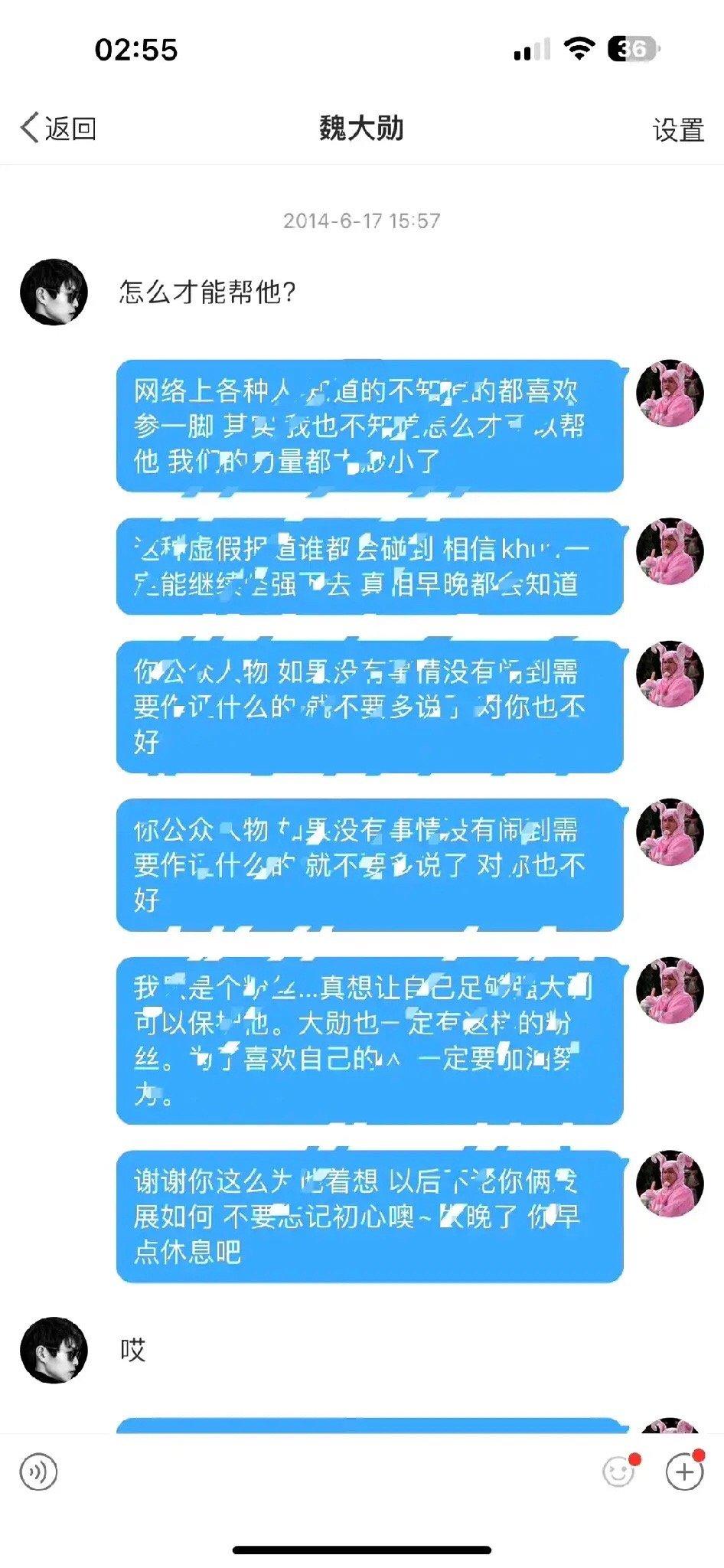 #魏大勋曾想帮尼坤澄清争议#一位喜欢尼坤的网友晒出魏大勋回复她的私信内容,她当时想帮尼坤澄清视频翻译带来的误会,魏大勋问“怎么才能帮他澄清”。