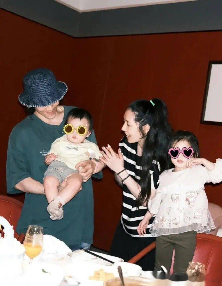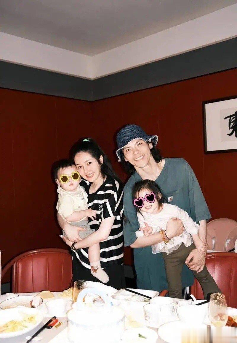 #向佐郭碧婷抱娃合照#向佐郭碧婷晒全家福,抱着儿女画面十分温馨!