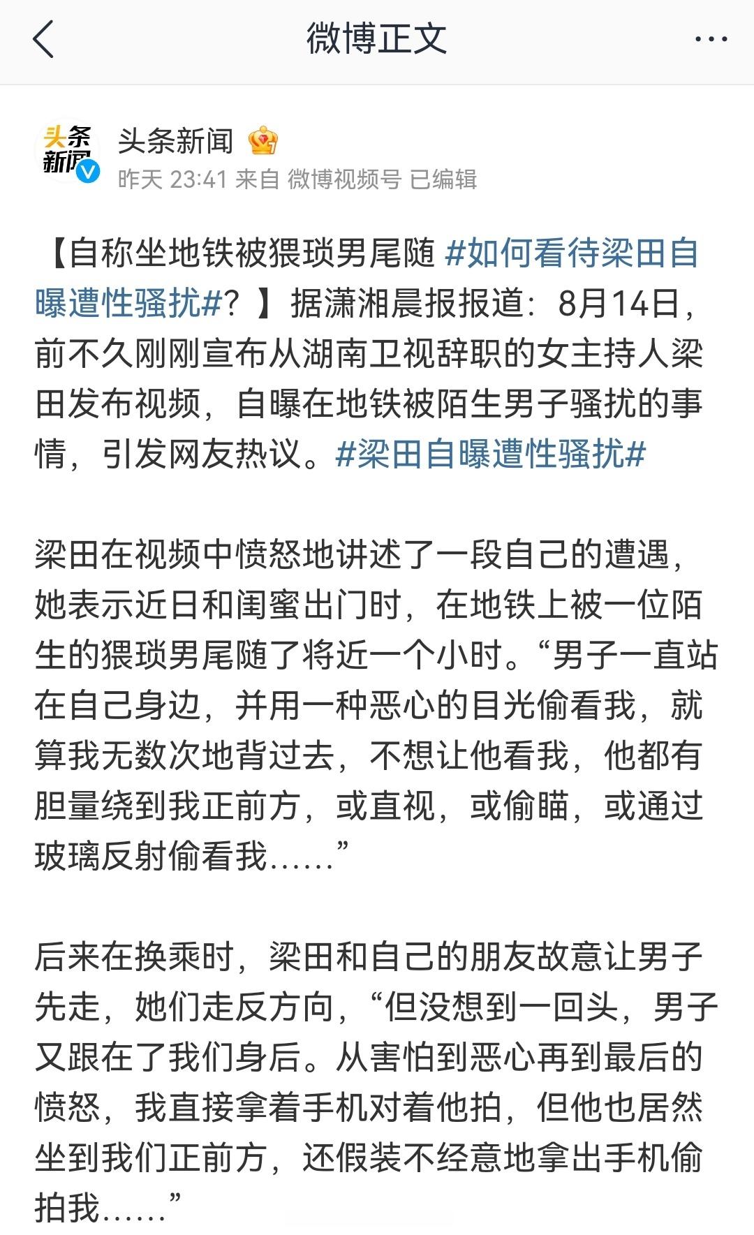 #梁田自曝遭性骚扰# 如何界定性骚扰?如果是性骚扰,当时立马就应该报警求助,而不是数天后在网上来吐槽。毕竟网上又不能帮你抓犯罪者。