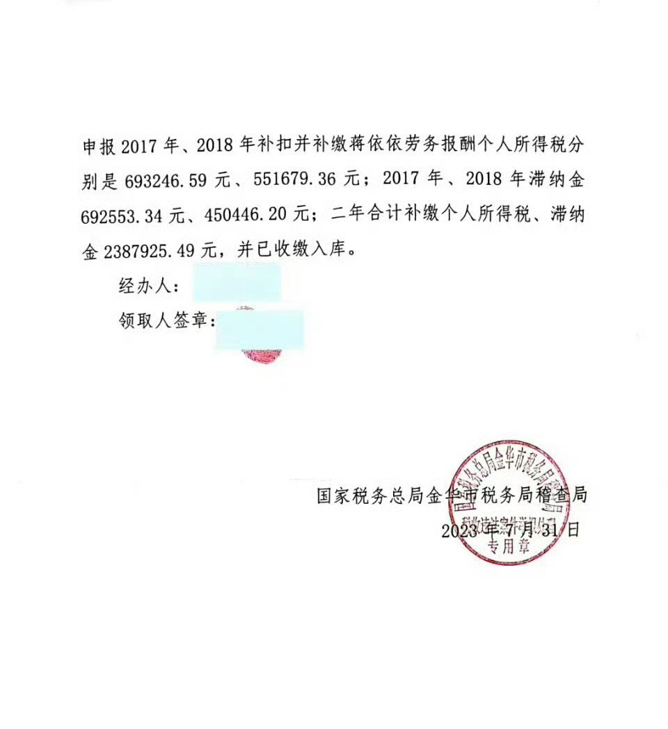 #蒋依依#卧槽蒋依依也被举报偷税漏税,涉及金额1613万元,今年2月举报的,7月查实确实存在偷税漏税,税务局已责令其工作室补缴个人所得税和滞纳金共238万元