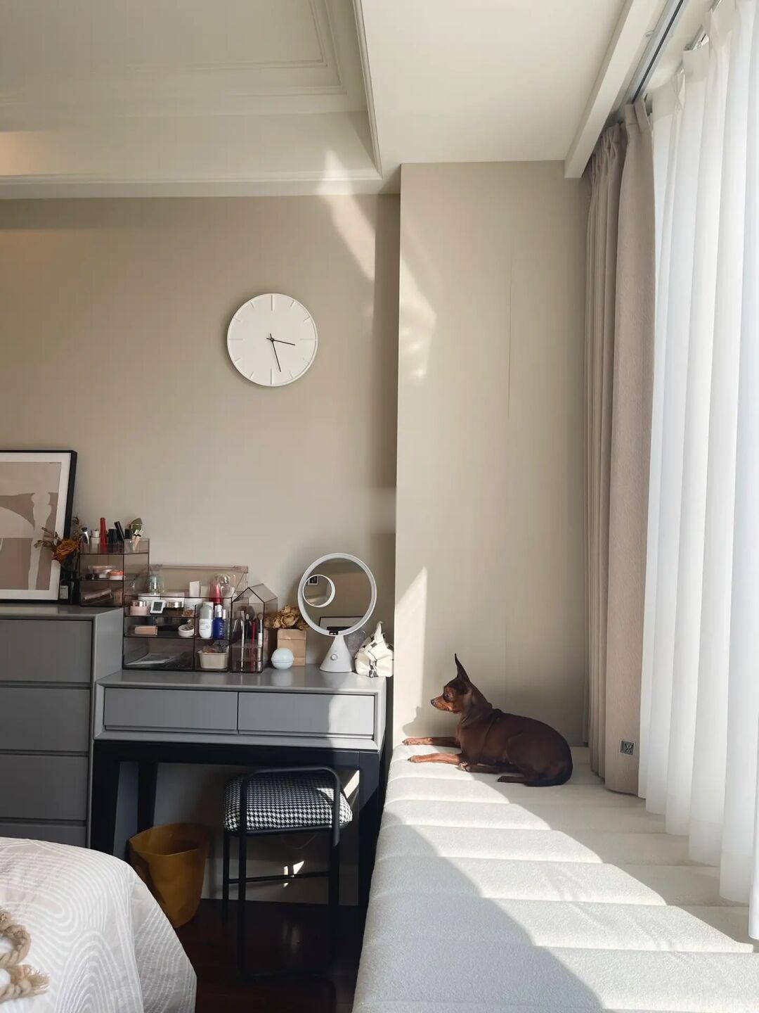 全靠窗帘等软装搭配也布置成了温柔简约的风格,