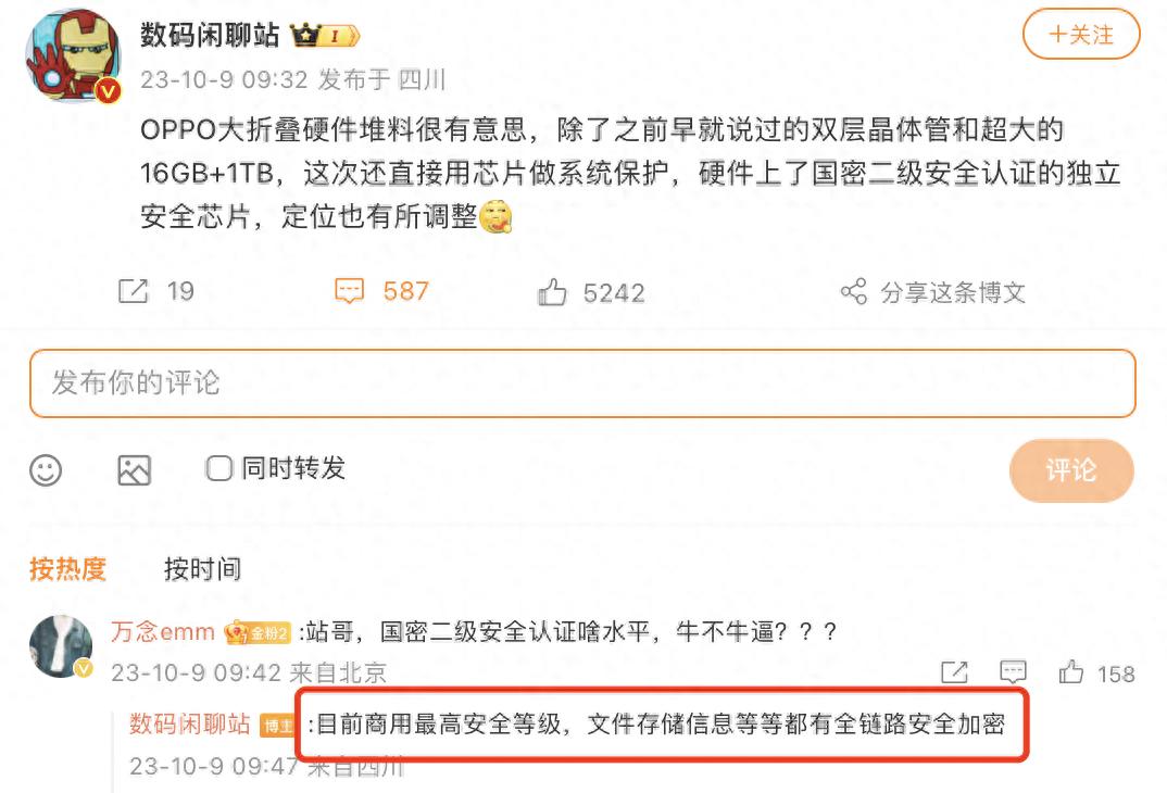 这年头还在看跑分?那华为手机早就没人买了!很多人不知道,当年的麒麟9000,不只是强在性能,最离谱的还得是它的安全,是当时全球首个通过国际CC EAL5+的移动终端芯片,现在的麒麟9000s的安全性也很牛,所以很多商务人士才会喜欢华为。 所以想要冲高端,尤其是高端商务市场,一定要注重安全性,你看隔壁OPPO就很懂,有爆料说大折叠新品Find N3会采用国密二级认证的独立芯片,这是啥概念?国密二级已经是手机领域最高的安全等级了,换句话说,Find N3很有可能会成为现在最安全的手机。 以前苹果也用过自研芯片来保护数据,MacBook上的T2芯片就是典型,这次OPPO不止要用独立芯片,还有可能会用上代号“孤岛”的自研技术,来保护商务人士的机密不泄露,这套软硬件组合拳挺有看头的,难怪大佬王石会提前上手。 听说10月份就要发布Find N3了,绿厂这回是瞄准高端商务人士了呀,大家觉得这步棋走对了吗? #OPPO Find N3#