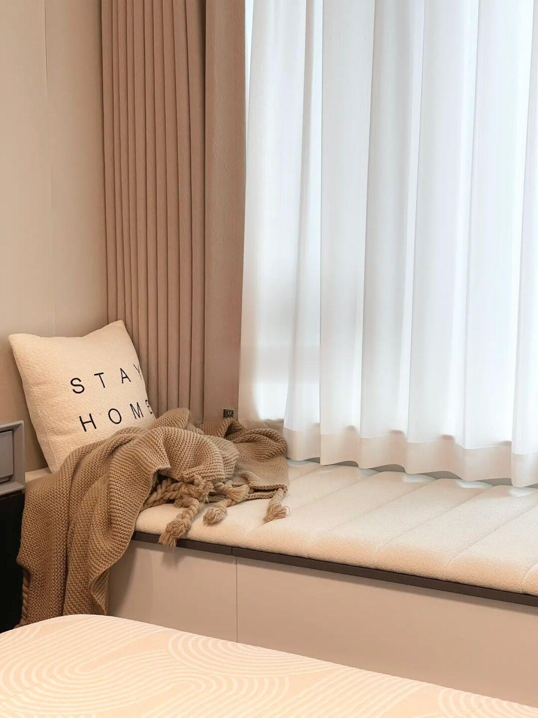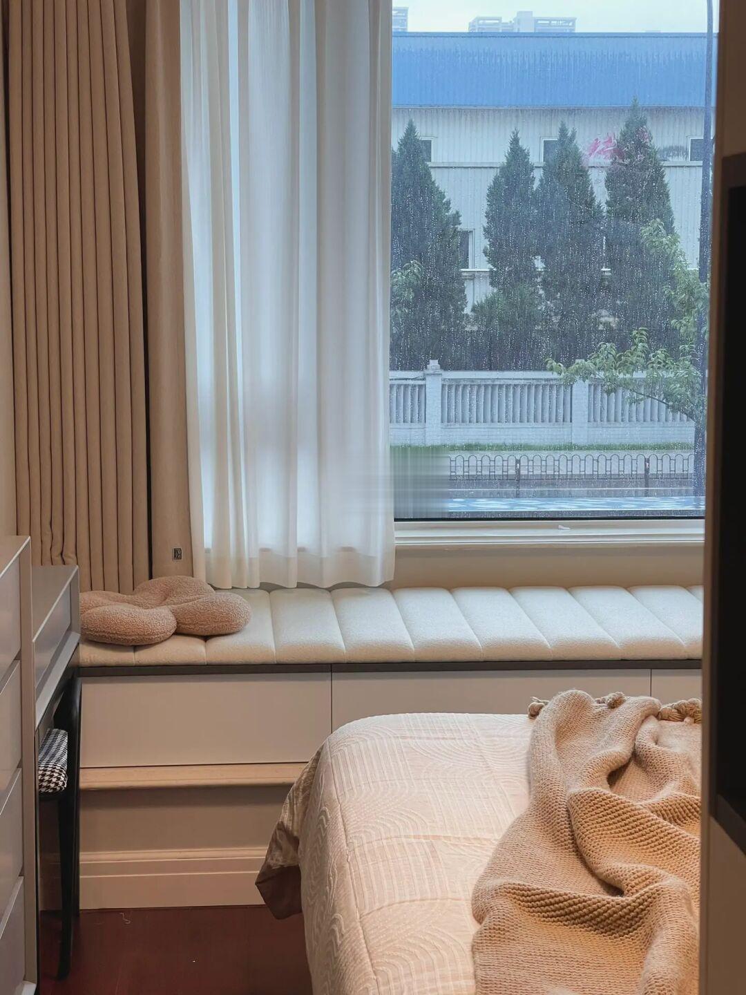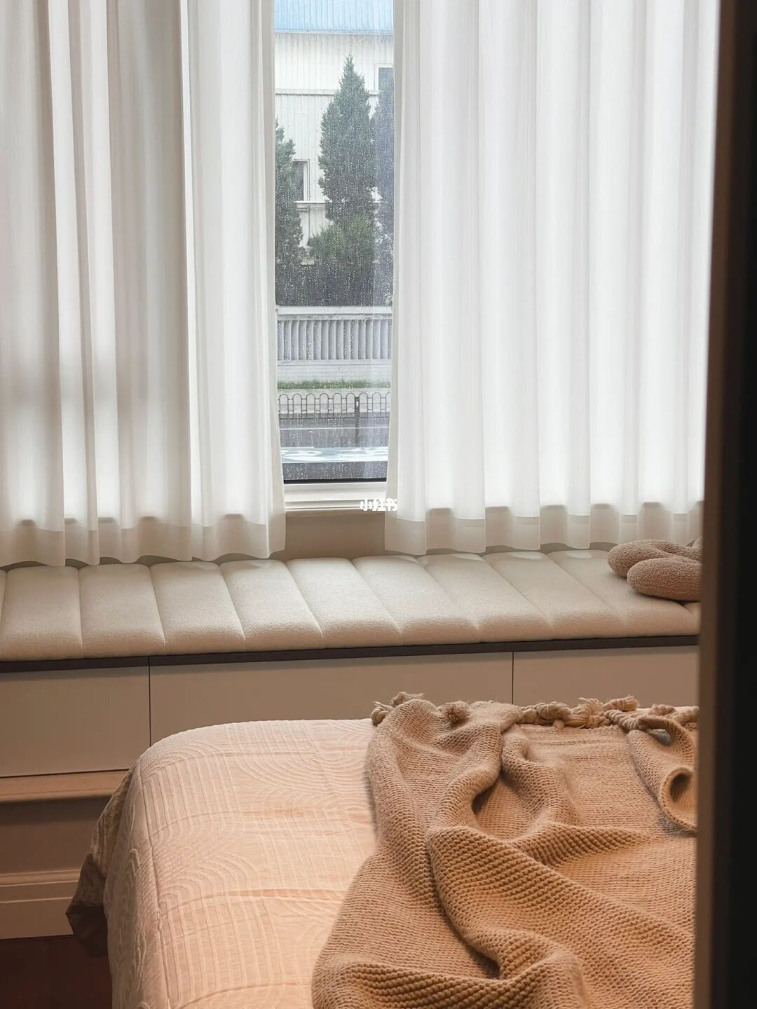 🌧️阴雨天的无滤镜live图 入住一年的小房间每次按下快门📷的时候还是让我反复心动 / ⛰️最近在川西度假,享受美景却也惦记着我舒服的小卧室 我们只有10㎡的精装修主卧,硬装未拆改。 搭配了软装也能改造成温柔舒服的风格。 燕麦色窗帘、床品和飘窗垫布艺都是温暖的感觉。 这样的阴雨天靠坐在窗边,细听雨声,屋内灯光明亮。 真的是我的梦中情卧呐💗