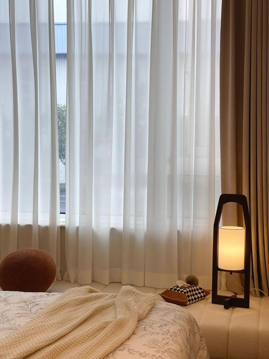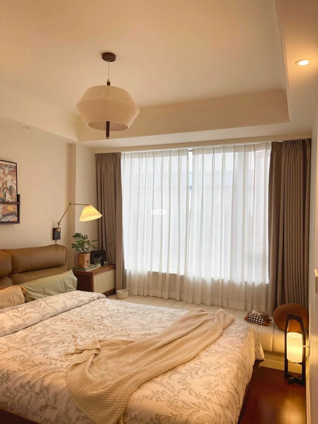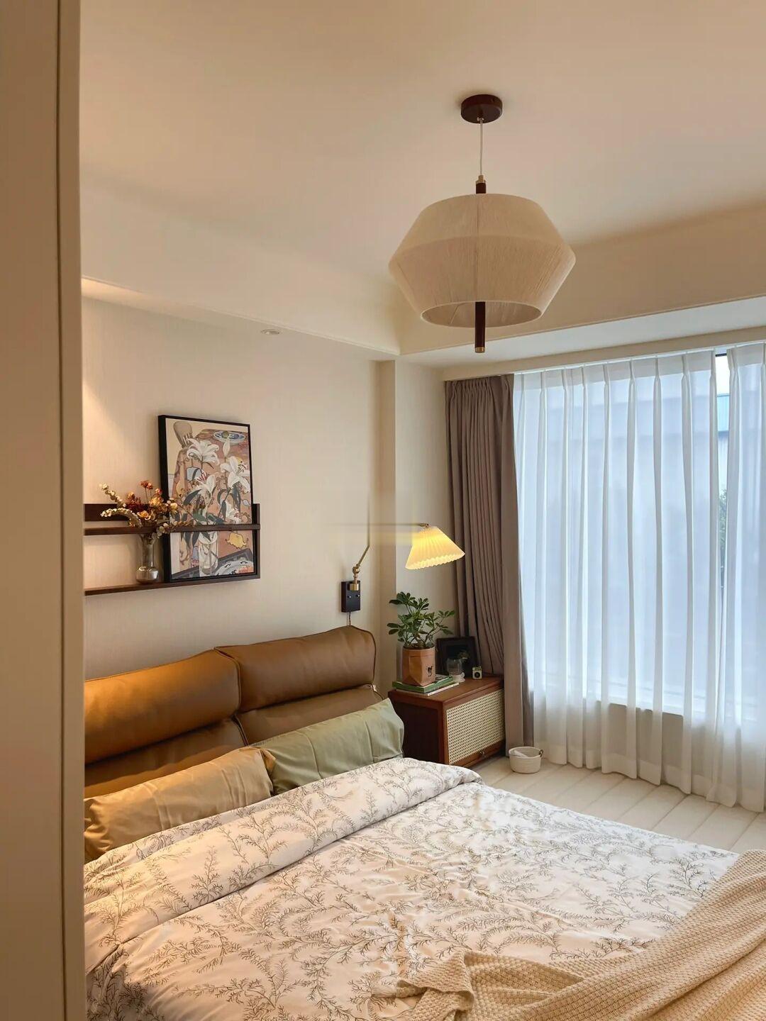 . Live图来咯~ 阴雨天🌧️的小次卧没想到这么舒服~ 温暖的布艺、治愈的灯光和随风摆动的纱帘, 都能让我在这个小空间安静放松下来。 / 精装交付的猪肝红地板在不拆改的情况下, 自己一点点尝试着软装搭配也能改造成复古风~ 不同深浅棕色系🟤软装,是现在很🔥的“美拉德”风格, 秋天的🍂的氛围感满满, 甚至连猪肝红地板一下子也有了沉静内敛的质感。 / 猪肝红地板既然“打不过”,那就选择加入咯~ 精心布置的轻复古小卧室真的越来越爱了💗 .