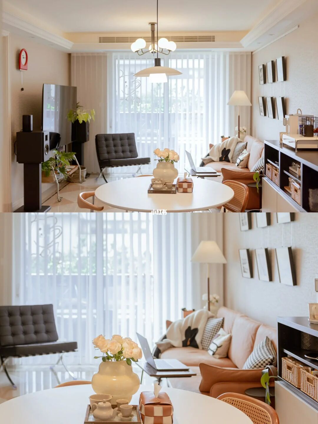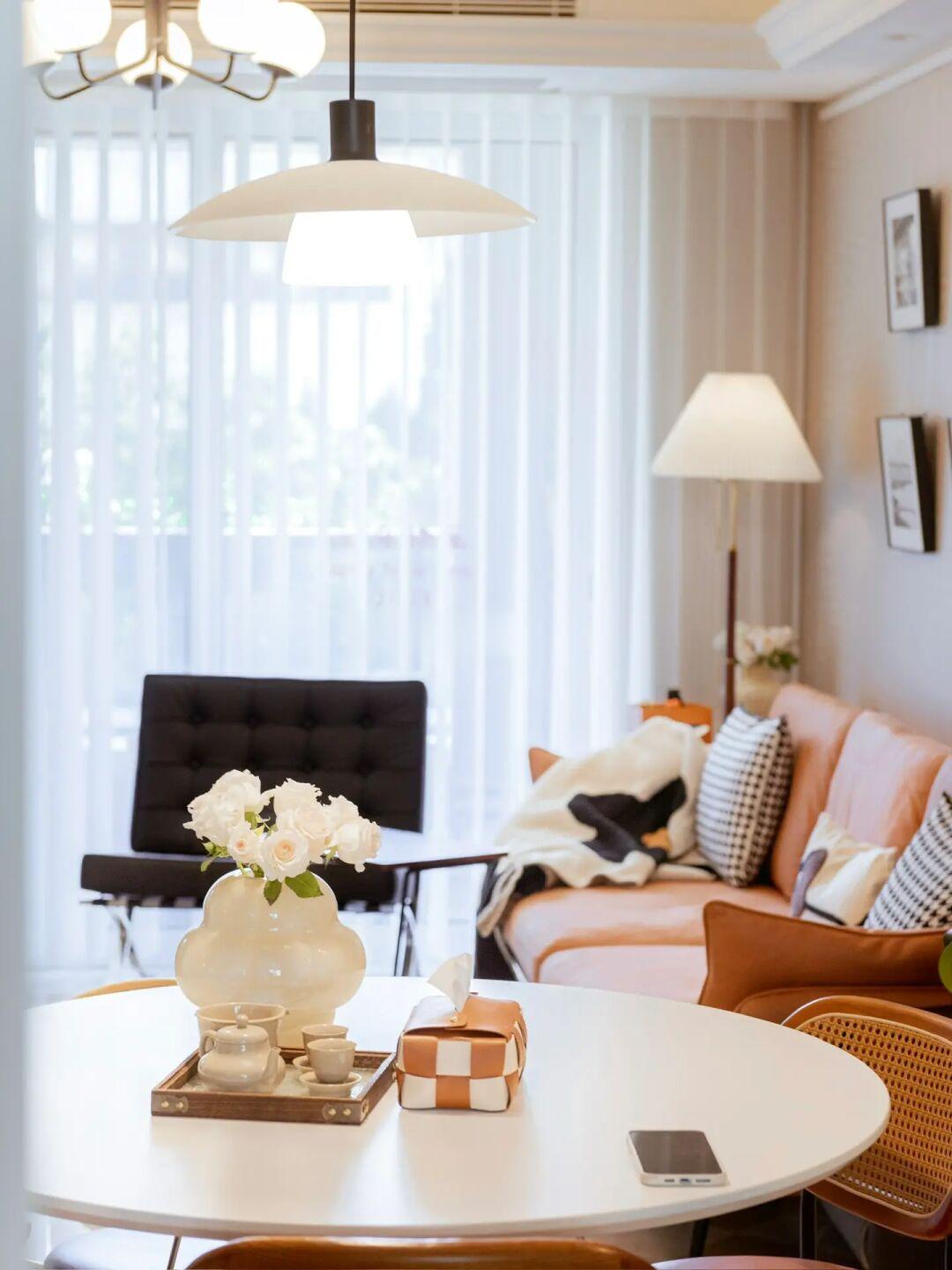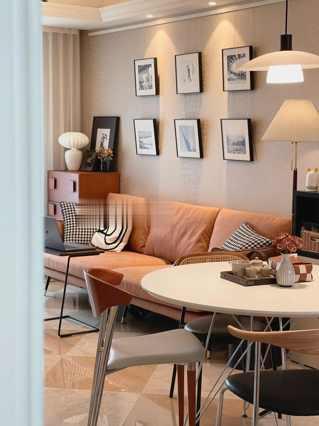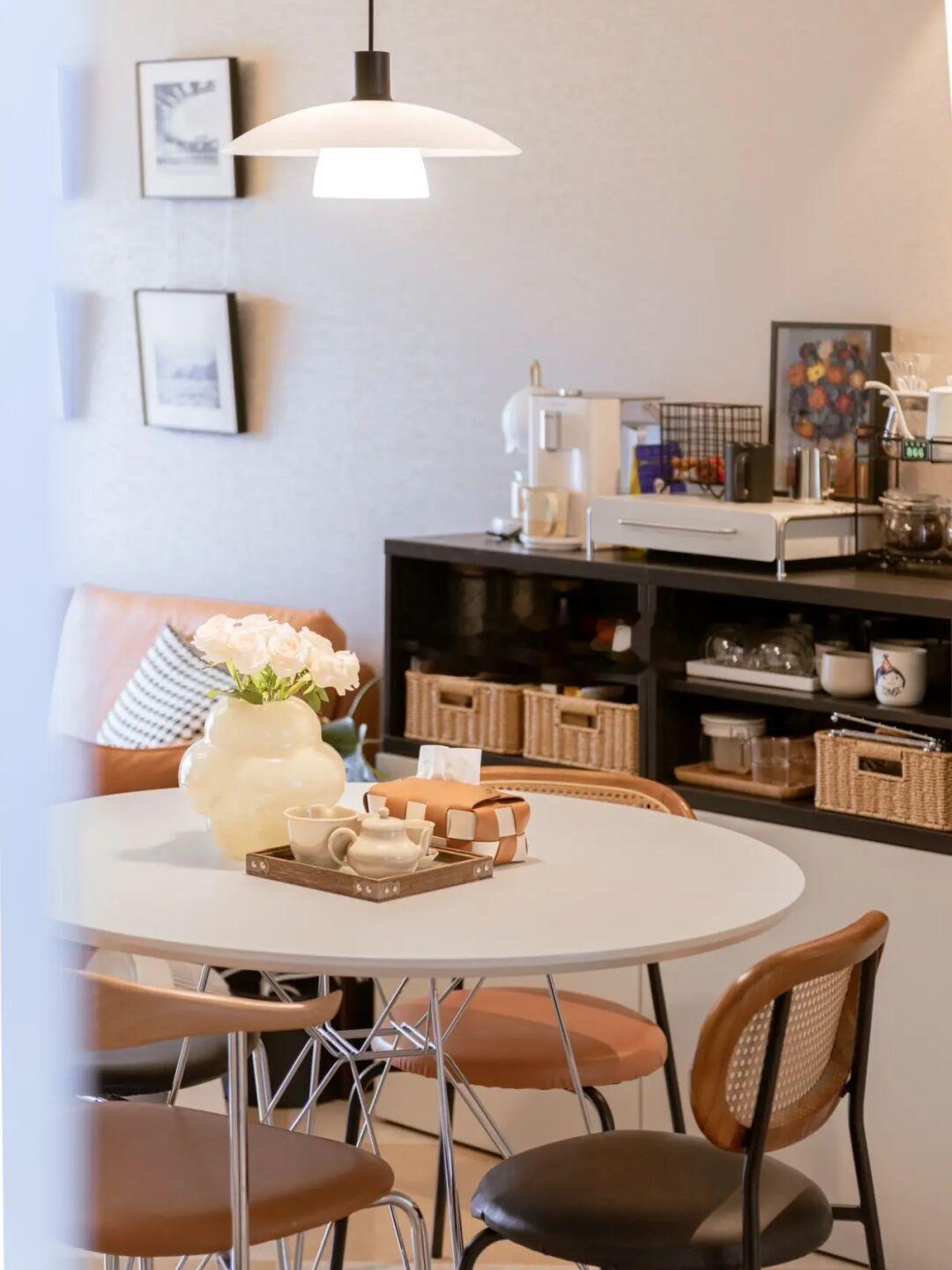 ①餐厅 | 参边柜+圆桌的布置,弥补厨房收纳不足的同时,成了家里使用频率最高的空间。