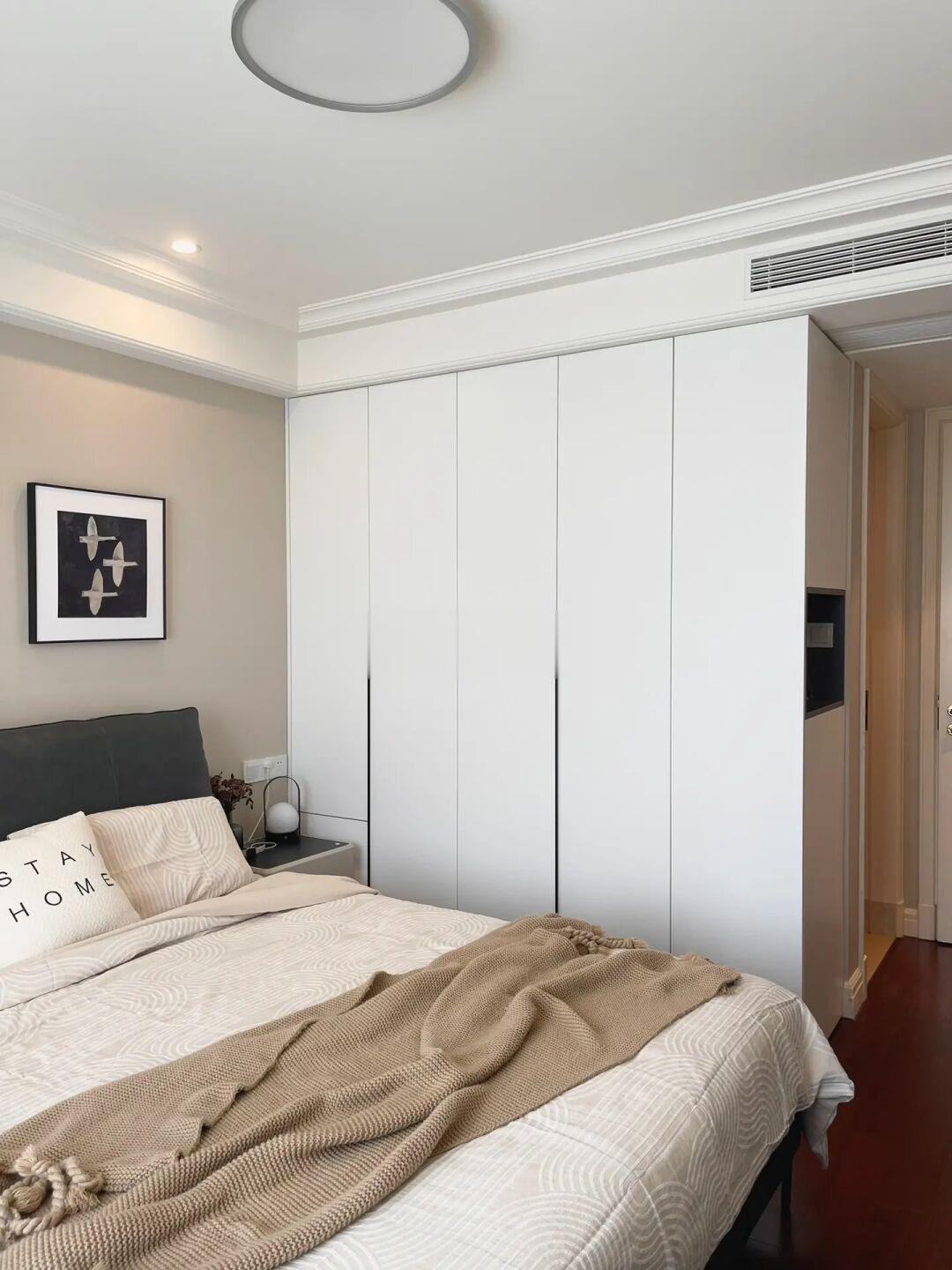 ⑥主卧 | 定制的衣柜+侧边柜,空间利用率超高,一门到顶的设计简单大方。