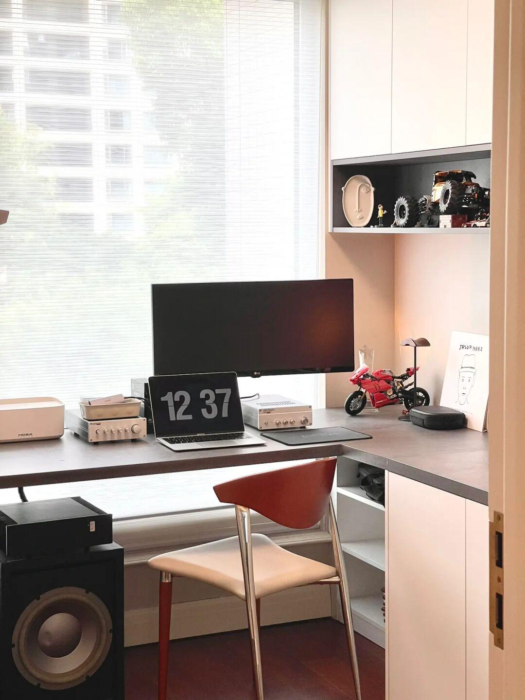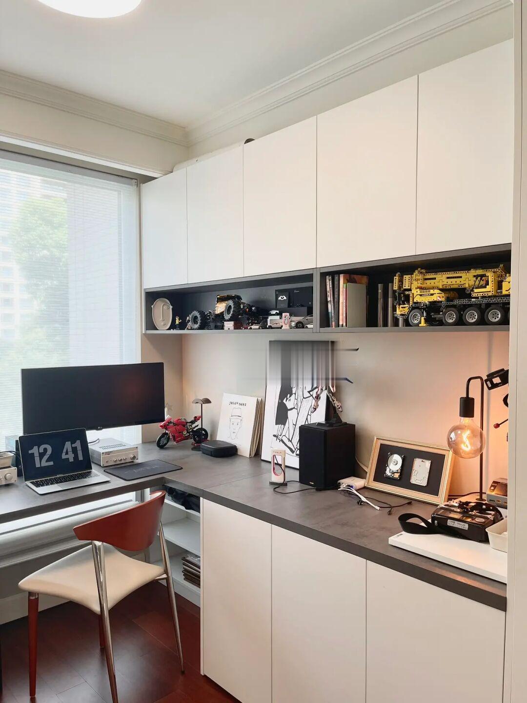 ⑩书房 | 定制悬浮书桌+满墙储物柜,纯粹的书房给我了我们工作学习安静的环境。