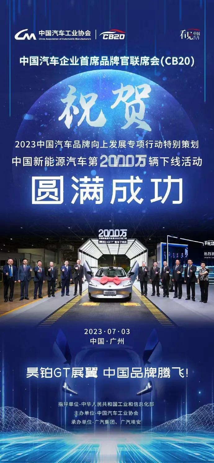 昊铂真牌面!为什么这一次新车下线仪式令整个行业的瞩目? 7月3日,一个不算特殊的日子,汽车圈却沸腾了!当天中国第2000万辆新能源车昊铂GT下线各大车企和很多汽车从业者都在庆祝这一刻,中汽协中国第2000万新能源车下线祝贺圆满成功海报也疯狂刷屏。与此同时,作为第2000台下线的新能源车型,昊铂GT也理所当然地成为了大家讨论的热点,同样在当天,一场盛大的昊铂GT上市发布会同步举行并且得到了中汽协、中信部乃至行业各界的支持,上市会几乎成为行业盛典,身为中国高端新能源品牌的昊铂也在此刻迎来了自己得意的时刻。 昊铂GT起步,时代的2000万步中国新能源汽车的狂飙才刚刚开始!昊铂来了 昊铂GT正式上市