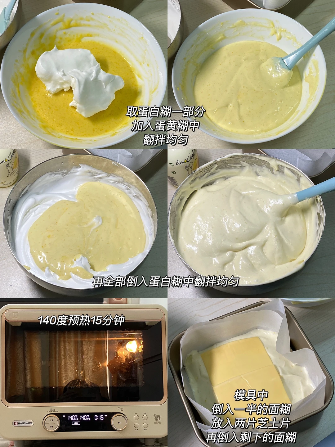🌷食材:玉米油62g,低筋面粉85g,纯牛奶65g,鸡蛋5个,细砂糖65g,芝士片两片,柠檬汁。