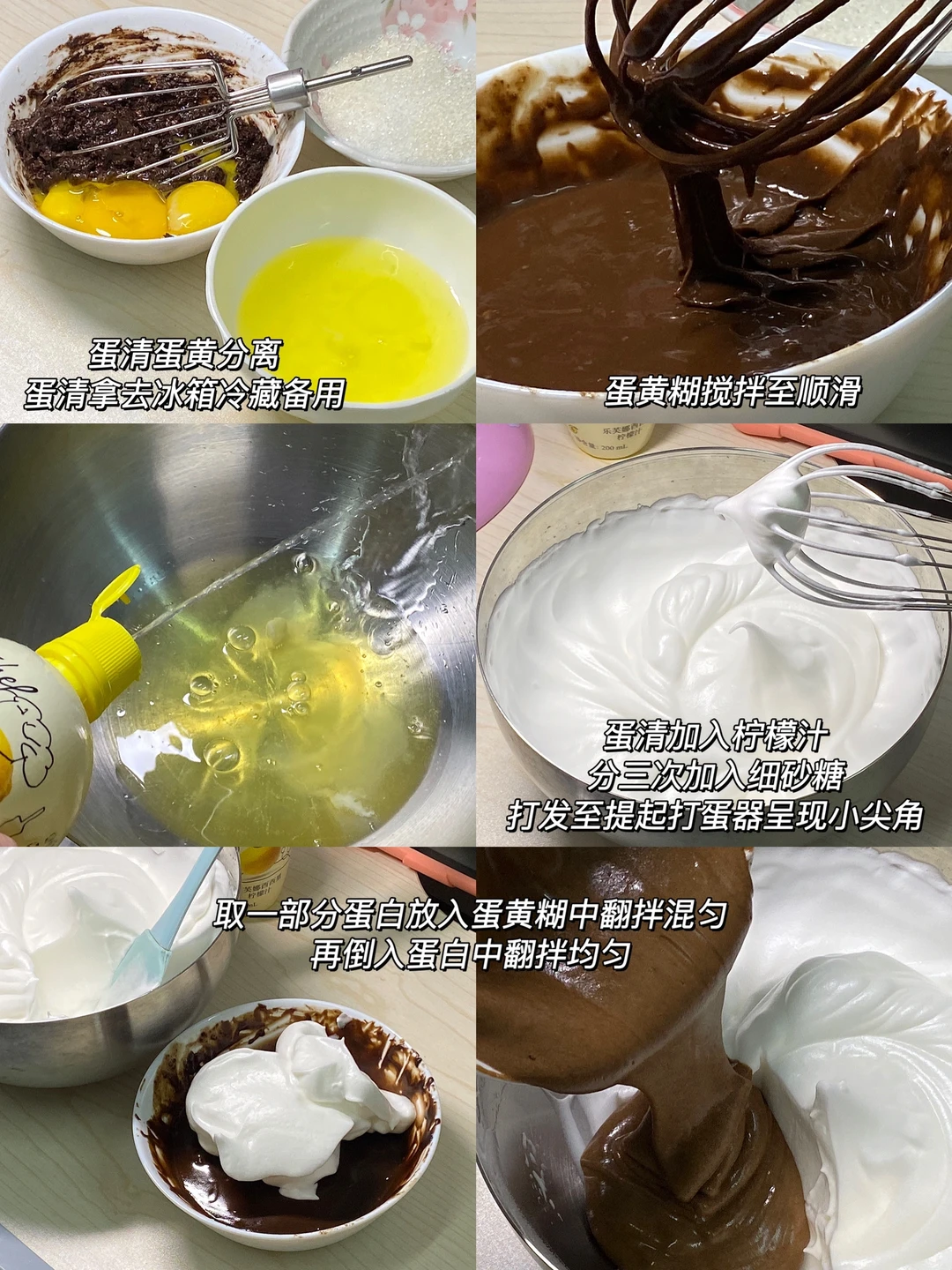 🌷食材:3个鸡蛋,低筋粉45g,玉米油30g,可可粉10g,纯牛奶45g,细砂糖40g。