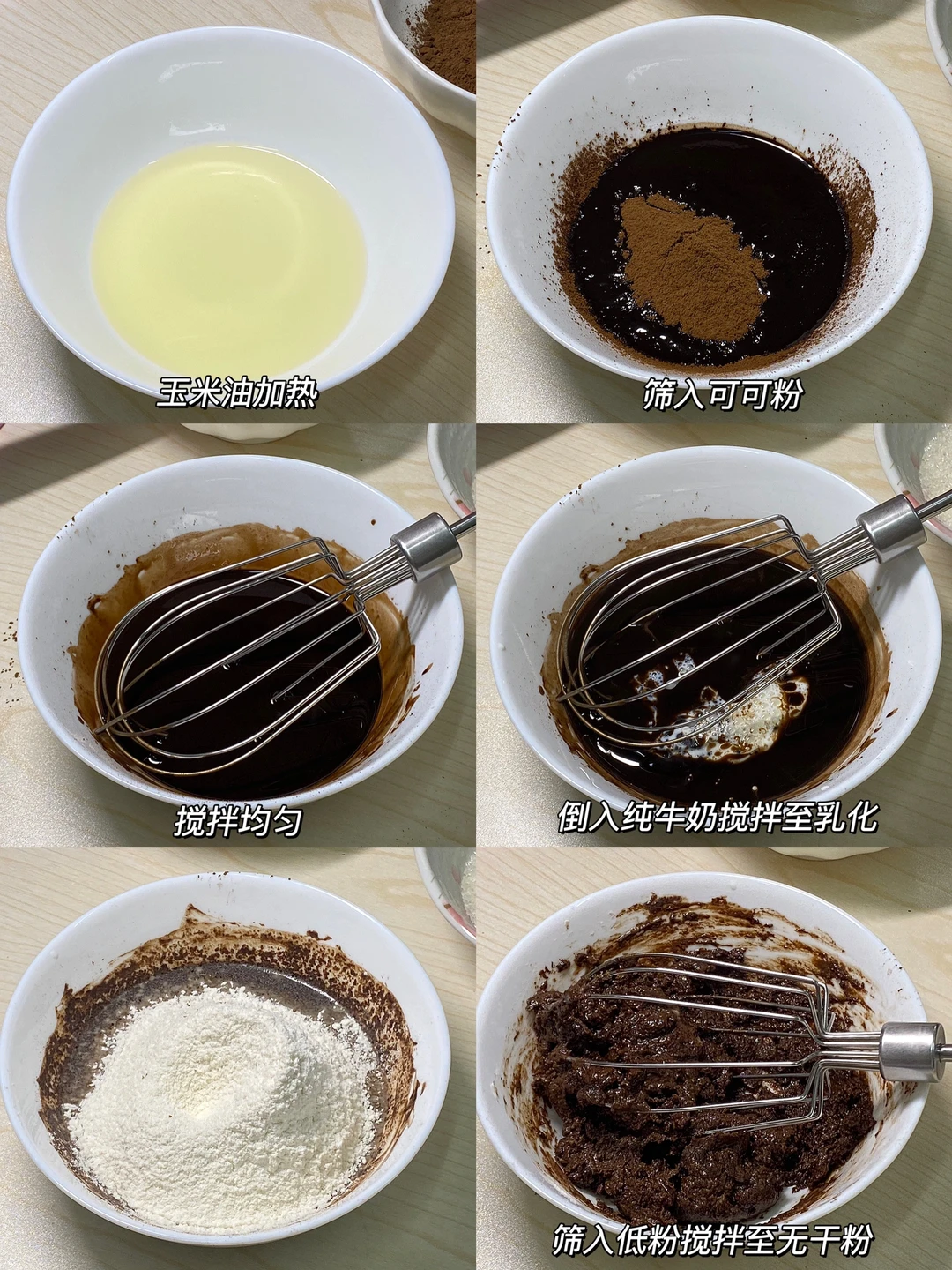 🌷做法:1.玉米油加热,筛入可可粉,搅拌均匀。
