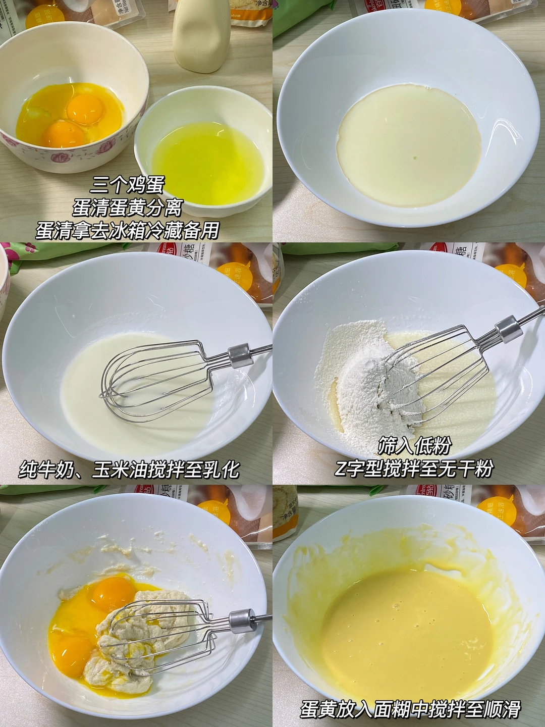 🧁做法:1.蛋清、蛋黄分离,蛋清拿去冰箱冷藏备用。