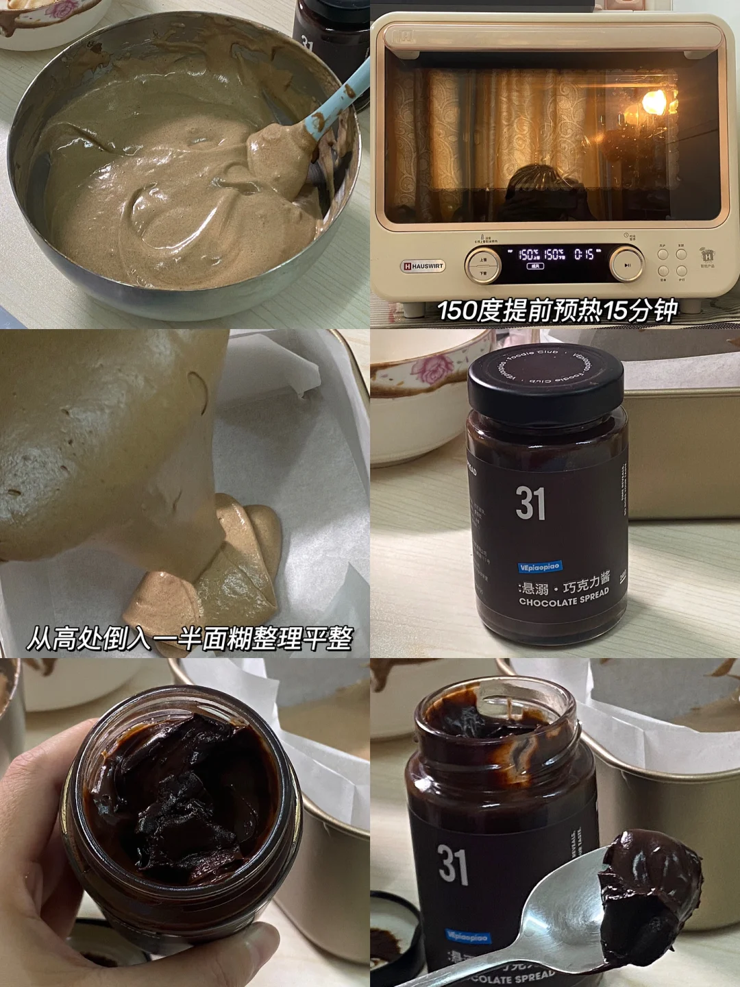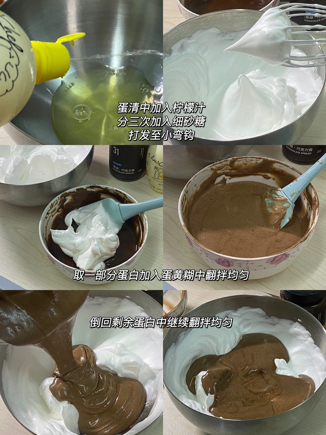 文案:🍫食材:鸡蛋3个,纯牛奶60g,玉米油40g,低粉48g,可可粉12g,细砂糖60g,VEpiaopiao悬溺巧克力酱。
