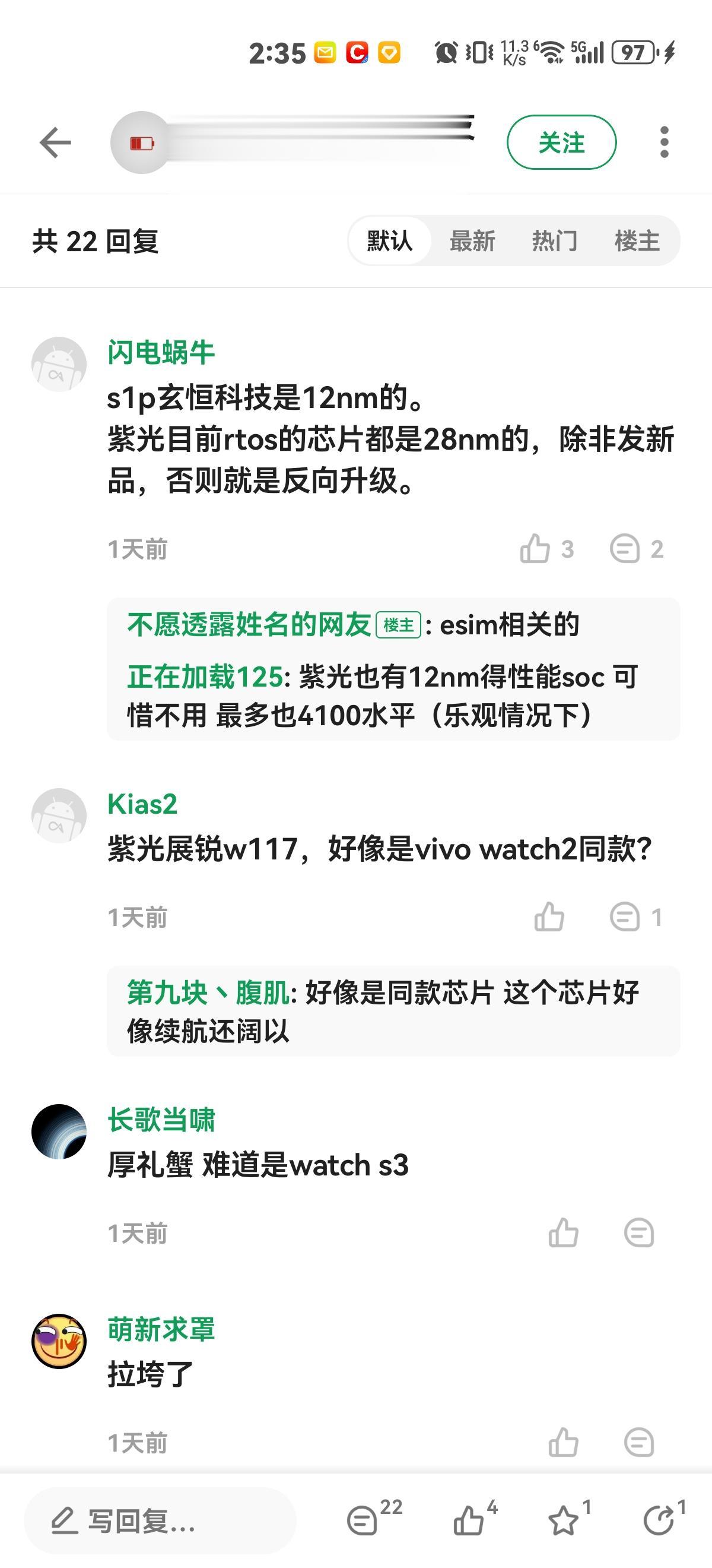 小米Watch S3大家还满意吗?不明白为啥要用紫光展锐的W117,这性能比上一代还拉,现在高通不出整出W5了吗?小米怎么不用?本来今年还想冲一块的,不过性能已经没戏了,热情凉了一半…… 隔壁绿厂OW 4 Pro不就用上了骁龙W5嘛,还有恒玄2700,性能强不少,还完美适配小米手机,雷总看了都得说句:这绝对是来捣乱的!说实话,今年大厂的智能手表,我就看好OPPO和华为,绿厂的新表做得确实不赖,特别是羽毛球模式,连林丹这种世界冠军都在用,真的卷麻了。