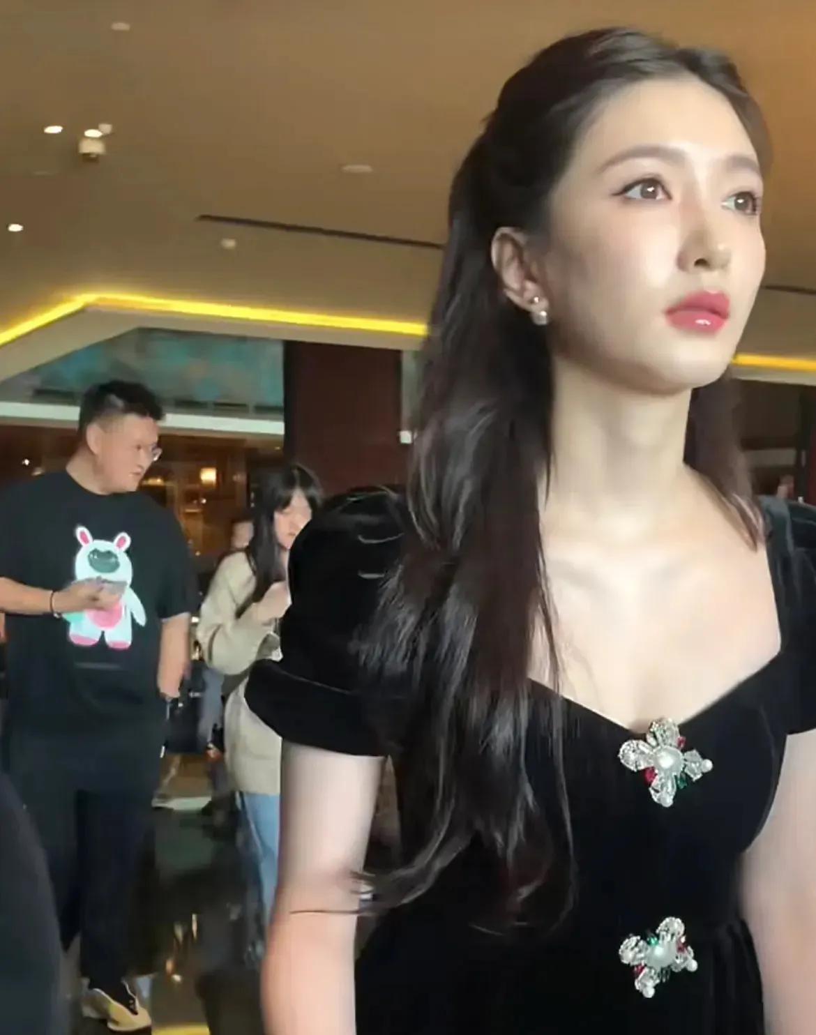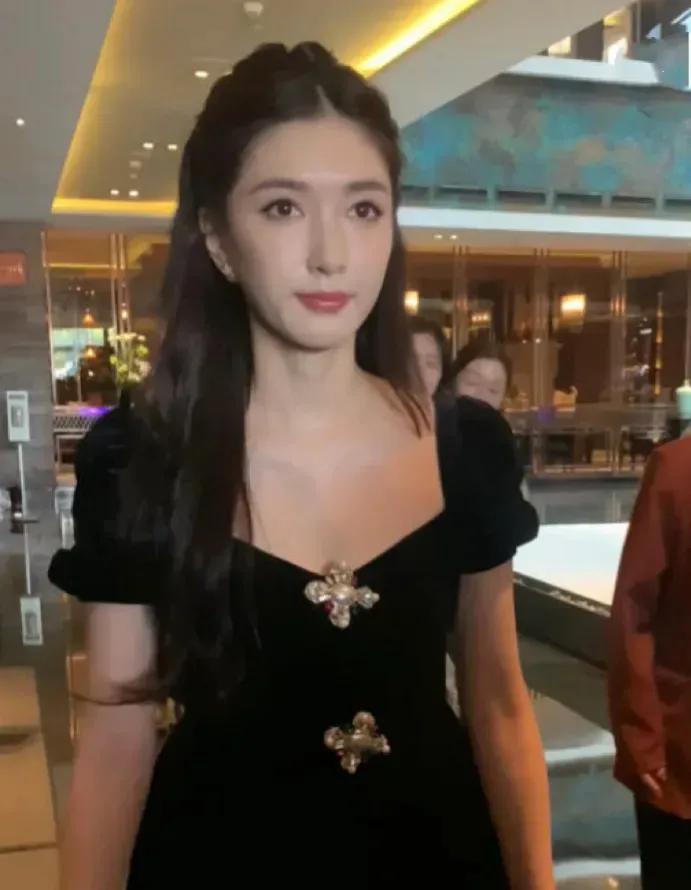 江疏影生图,看着脸型饱满了很多,有一点微肿的感觉,不过确实显得年轻了! 穿黑色泡