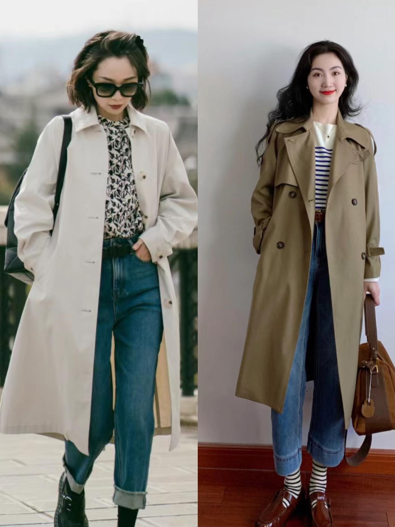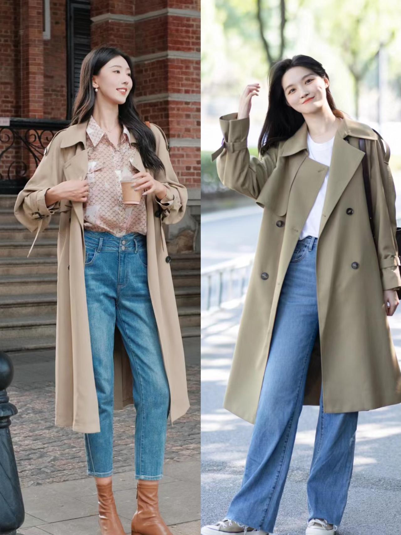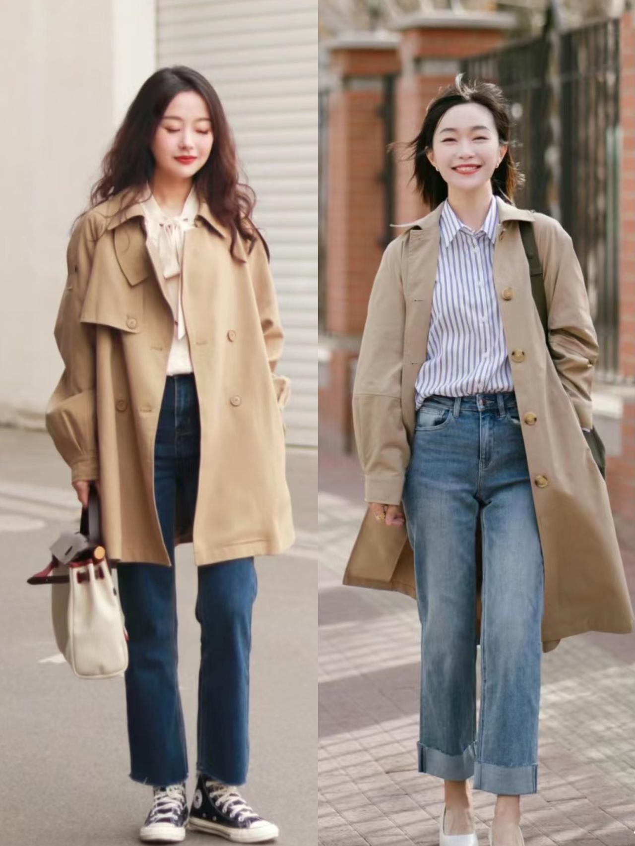 见过世面的女人,穿风衣从不配打底裤,“风衣+牛仔裤”高级大气 见过世面的女人,穿风衣从不配打底裤,更喜欢搭配牛仔裤。风衣配牛仔裤,彰显活力感,百搭不挑人,风格更多变。可以选择高腰直筒牛仔裤、微喇牛仔裤、卷边牛仔裤或九分牛仔裤。