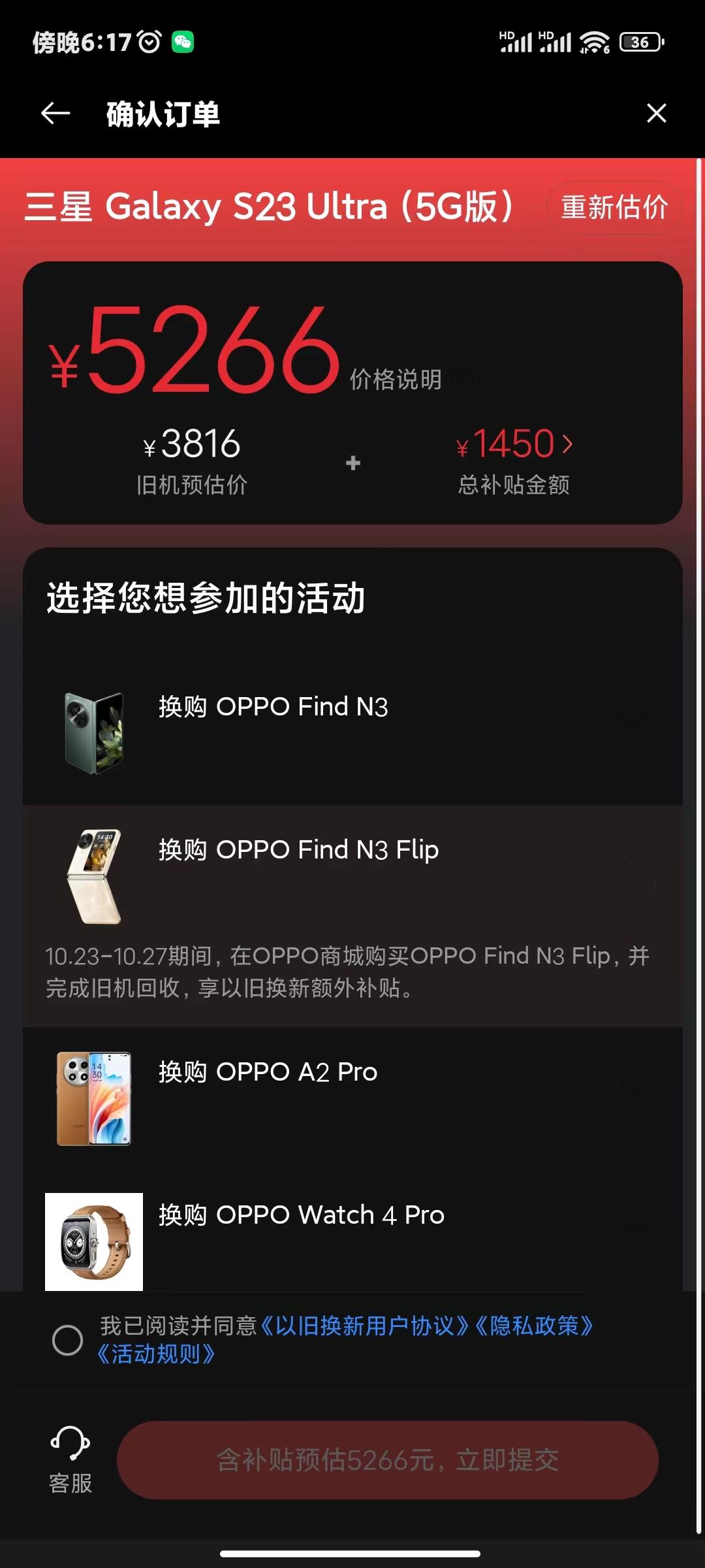 昨天从苹果店门口经过,突然心里闪过一个想法,要不把手里的S23 Ultra给置换了吧?看见它现在跳水这么狠,我心在滴血,结果没想到当初的万元机皇,苹果店给出的抵扣只有4000出头……我一直用的很小心,屏幕啥的也都正常。说实话,这么置换太亏了,我又跑去别的品牌商城里看了一下,刚好来给大家分享一下。 1、OPPO商城:抵扣5266元 2、华为商城:抵扣4100元 3、三星商城:抵扣5190元 没想到最良心的反而是OPPO,把三星自己都给比下去了,以旧换新还得是OPPO舍得给钱啊。我点进去商城里,还看见好几款机子在搞活动,像骁龙8 Gen 2性能旗舰一加Ace2 Pro有12期免息,千元拍照王者K11到手最低1599元,水桶机一加Aec2V到手1799元,感觉这波双11还是蛮有诚意的,再加上以旧换新岂不是很赚?
