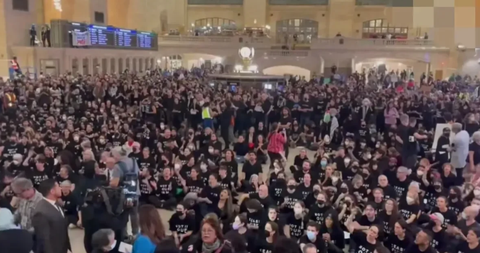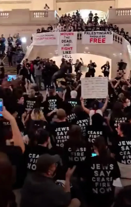 快讯!纽约中央车站出现大规模抗议活动。美国犹太人反战组织表示,他们的行动是为了反对美国对以色列在加沙的行动。纽约警方为应对日益增多的抗议者,封锁了车站入口。