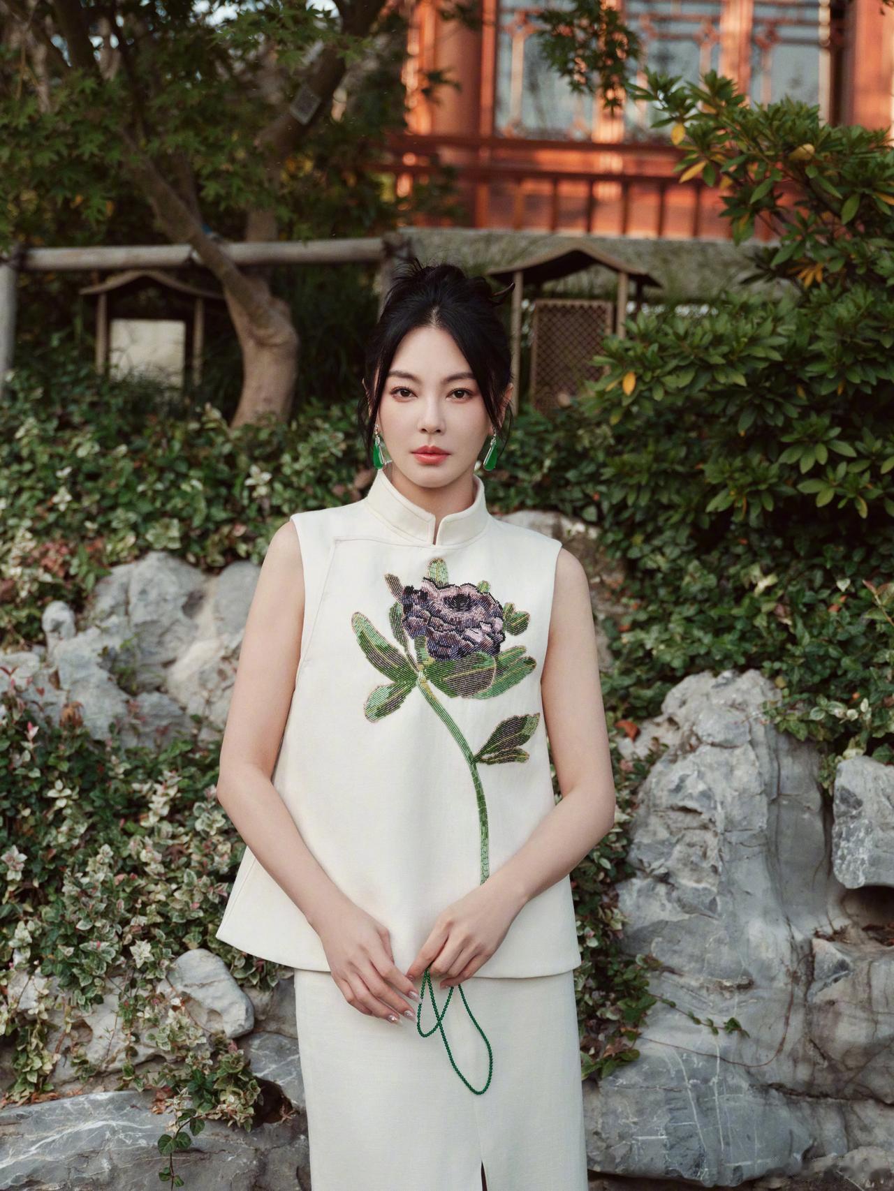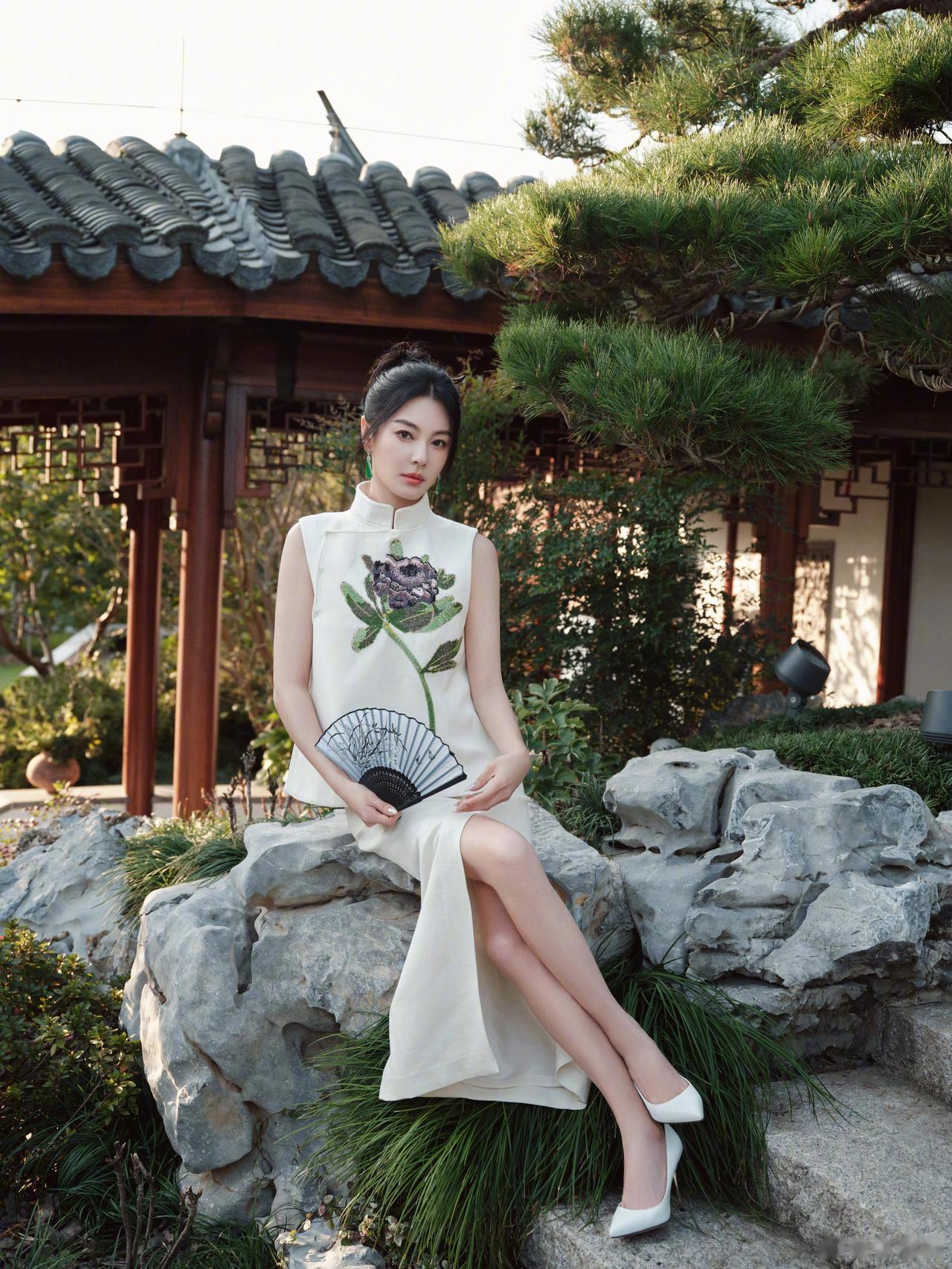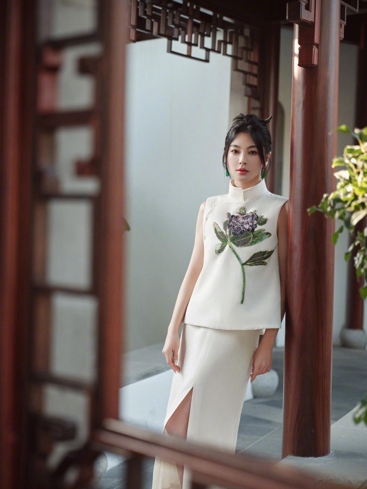 哇塞!张雨绮国风造型也太美了吧! 她穿素雅的白色国风套裙,看着整个人豆轻盈了起来,像是瘦了很多! 白色国风套裙,与园林风格的背景也是很配呀,素雅的白裙,精致的刺绣,复古的立领,更多了几分含蓄之美。 开衩的裙摆,温婉雅致,也显得双腿修长。 张雨绮这组造型,怎一个爱字了得? #秋日生活打卡季#