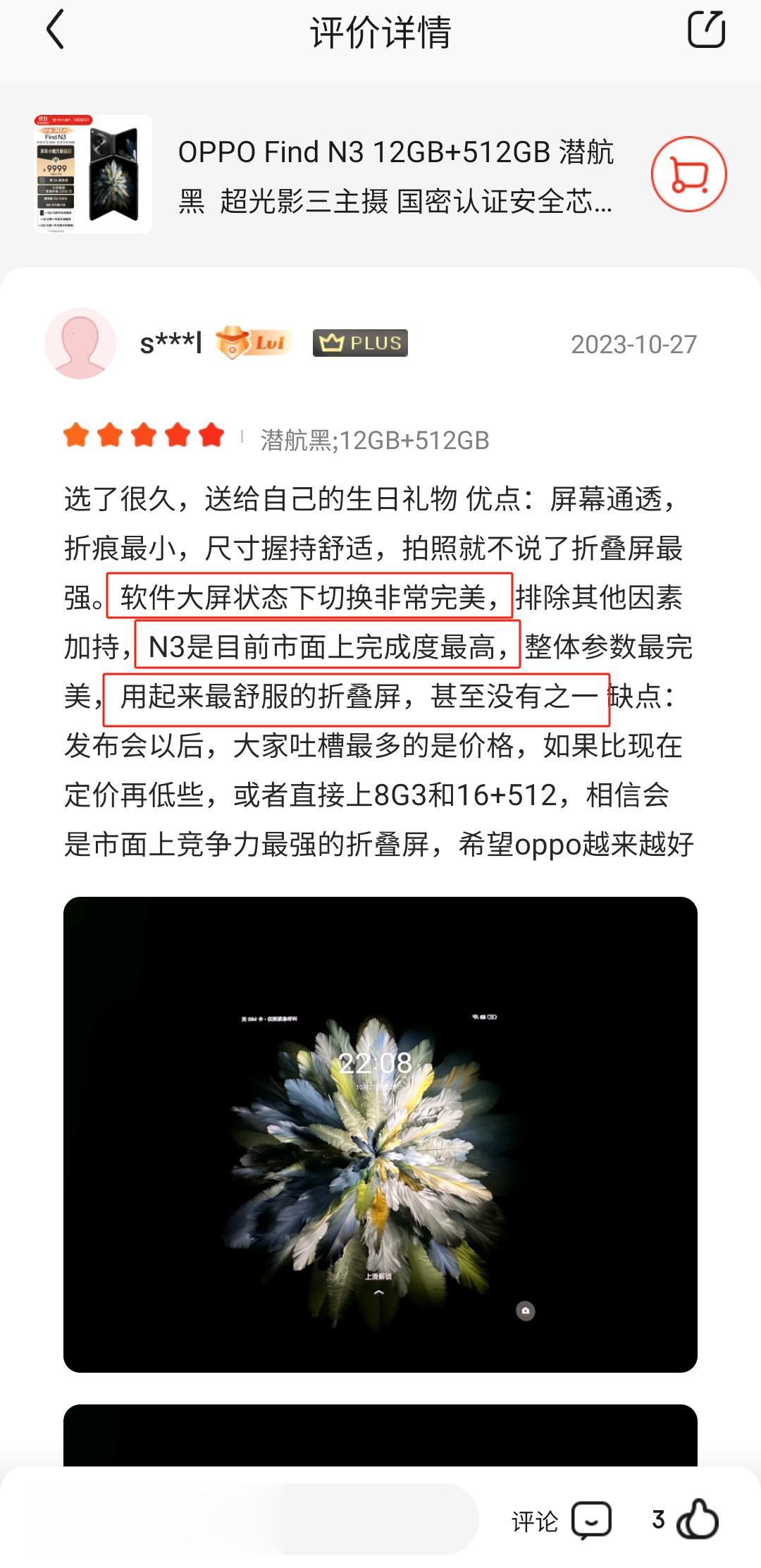 这位兄弟算是把我心里话说出来了……抢不到Mate X5,等来了Find N3,入手才知道,一点也不后悔,OPPO定价9999元不是瞎搞的,好评度98%就说明首批用户体验都不错。 很多人都在夸Find N3手感不错,我昨天也上手了,确实不重,不到240克,握持感挺稳的,而且拍照很强,评论区里还有人拿它跟某家直板旗舰超大杯比,想想以前折叠屏拍照老是被吐槽,现在终于翻身了! 感觉Find N3机主夸起手机来,一点不吝啬呀,说N3是目前市面上完成度最高的、用起来最舒服的,还“没有之一”,这交互有这么牛吗?我上手感觉还真是,没遇到啥BUG,适配挺完美的,全景虚拟屏、文件任意门这些新功能用起来都挺顺手,大屏办公看剧就是爽。 说贵的人压根没注意,别家的512GB要么和Find N3一个价,要么贵好几千,OPPO这回是真的良心。 #OPPO Find N3#