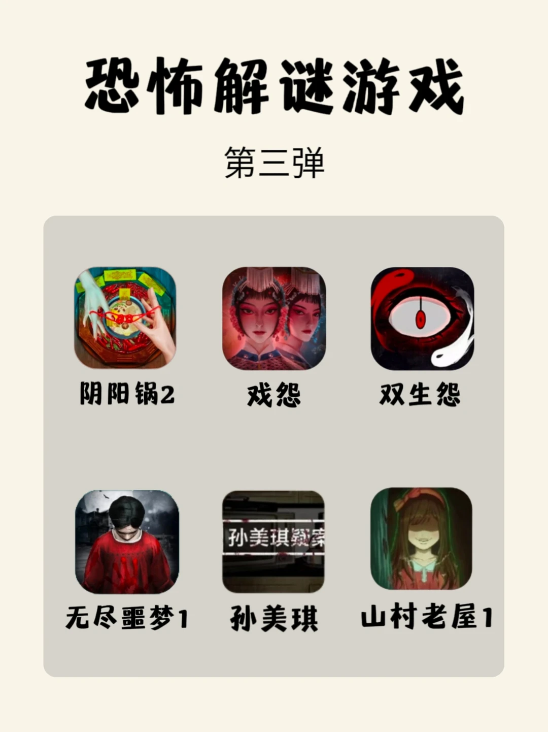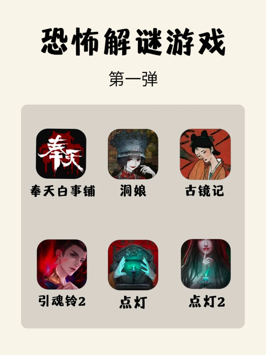 嗨!姐妹,今天分享18款恐怖解谜游戏,所有游戏都可以在安卓和ios玩! – 1⃣️奉天白事铺 2⃣️洞娘 3⃣️古镜记 4⃣️引魂铃2 5⃣️点灯 6⃣️点灯2 7⃣️鬼哭岭 8⃣️情棺 9⃣️无尽噩梦5 🔟虫鸣 1⃣️1⃣️灵探 1⃣️2⃣️宅怨 1⃣️3⃣️阴阳锅2 1⃣️4⃣️戏怨 1⃣️5⃣️双生怨 1⃣️6⃣️无尽噩梦1 1⃣️7⃣️孙美琪 1⃣️8⃣️山村老屋1 –