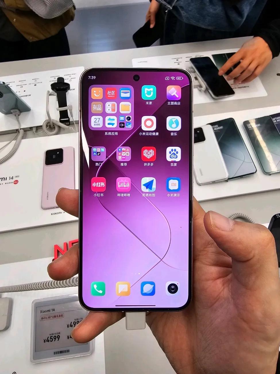 [泪奔]去线下看了小米14,感觉手里的小米13更香了……这大镜头怎么看怎么别扭,放在小屏身上有点不和谐,我还是更喜欢13的设计,而且正面屏幕,13是三星E6屏,14是华星光电C8屏,凭良心说,观感还是13更好,感觉14有点偏色。 至于其他的,流畅度其实差不多,动画还是澎湃OS更好一点,拍照我反而更喜欢小米13的效果,小米14拍出来的画面太亮了,不够真实。 再加上现在小米13都跌到3000元了,没啥理由让我一定要买小米14呀[捂脸]