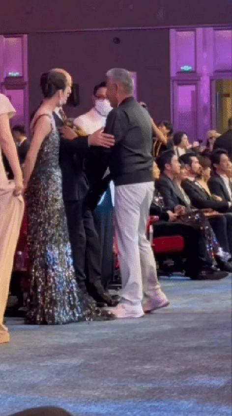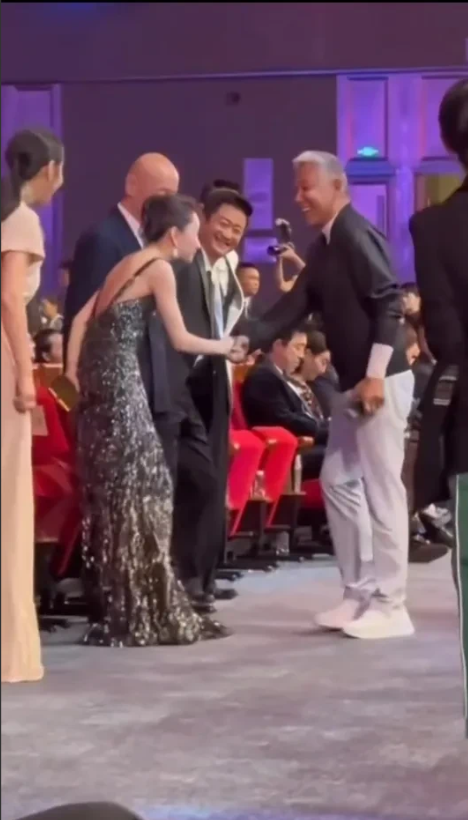 金鸡电影节上的人情世故,明星见到陈道明跟见到领导一样,但握手动作明星地位高低反应不一样。 吴京、刘德华、葛优就是挺正常的握手,周冬雨单手稍微弯下腰,闫妮是双手,腰都快成九十度。 座位安排方面,陈道明左边是梁朝伟,当宣布最佳男主角是梁朝伟的时候,刘嘉玲用眼神示意梁朝伟跟陈道明握手。