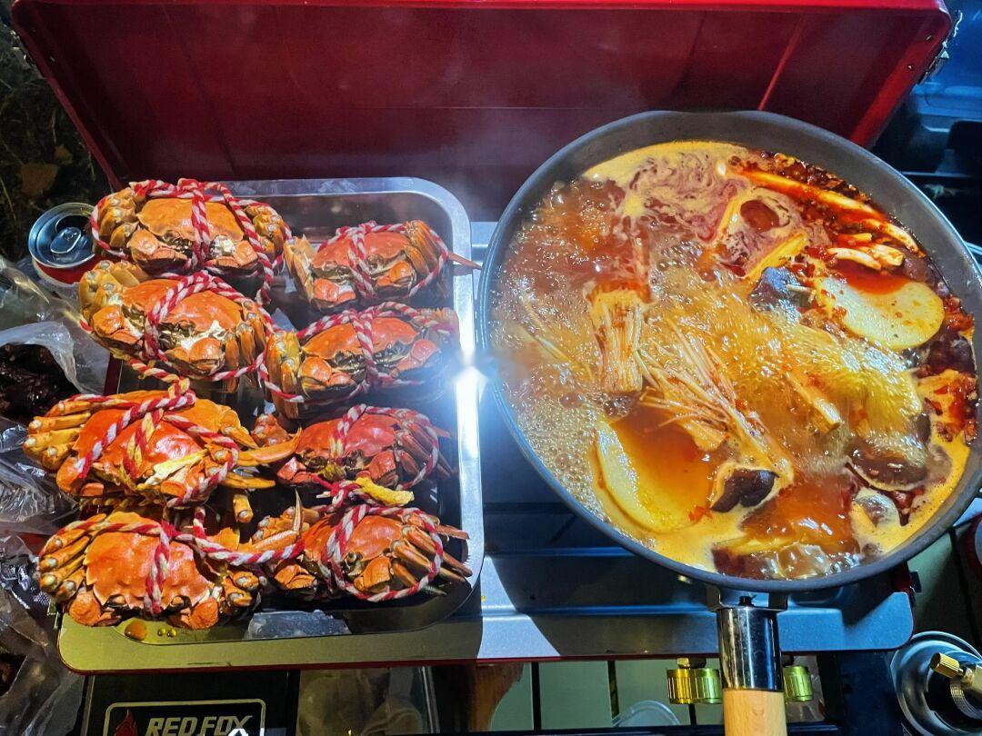 在室外露营吃大闸蟹🦀️吃烤全羊🐑